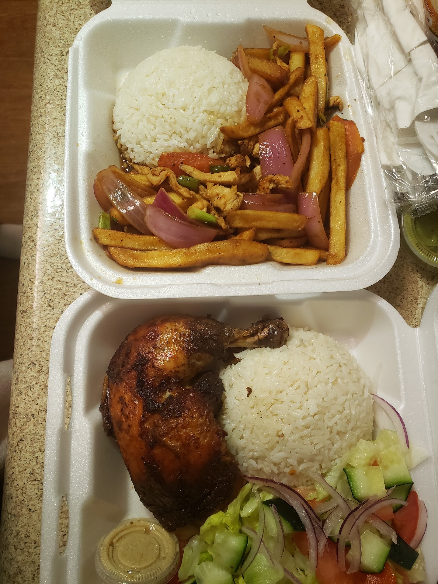 Read moreFood was fantastic! We had the picantes mariscos, lomo saltado, and kids meals. It’s probably best to order to go as there’s something less than normal about the dining room here. It’s more like a storeroom and office with tables and chairs as there are lots of inventory just sitting around and a desk and computer right there with you. Also, the curtains next to us had us thinking of what scenario took place as there was something splattered all around the table on the curtains. It looked like someone might have been whacked at the table, or an animal was butchered there, or maybe someone just dropped a really saucy dish that splattered on the curtains. We were the only ones who dined-in and there were 4 pick-ups/take-outs.