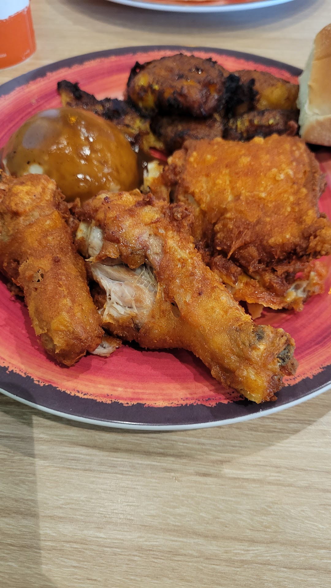 I order the 12 pcs grilled leg and thigh. The chicken was really burn and not sure bc of the pepper but I think the chicken should cook properly and not to the point where is burn. It was more work for me bc I have a 6,4, and 2 yrs kids and didn’t like that burn taste. It was more work for me to make food look good for them. On top of that it came with 3 side and I order coleslaw, rice and French fries . The coleslaw was half way and it states it for 6 people. I understand people have bad days but I believe a restaurant should take care of there customer the right way. I call the 833 number and ask the customer service if the cup should be filled up full or just halfway and he mention it’s should be full to the top.I just didn’t want to cook and save time but now i need to cook for my kids. I will not come back to this restaurant no more. I don’t like arguing with people but if we pay for our food we should have good food and proper cooking. I paid $53. 56 and it’s pricy but I said well hope is good. Really bad experience. If your going to this restaurant please make sure your cup is full and chicken cook...