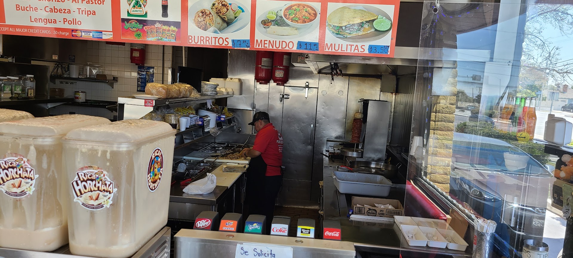 The place itself used to be a different Mexican food place and before that a burger joint several years ago. It is not fancy by any means and the tables and benches are worn as well. It is a familiar neighborhood eatery slightly bigger than a hole-in-the-wall with enough parking for a minor lunch rush. But we didn't go for the atmosphere and were pretty satisfied with the very friendly service by the cook who also cashiered us.