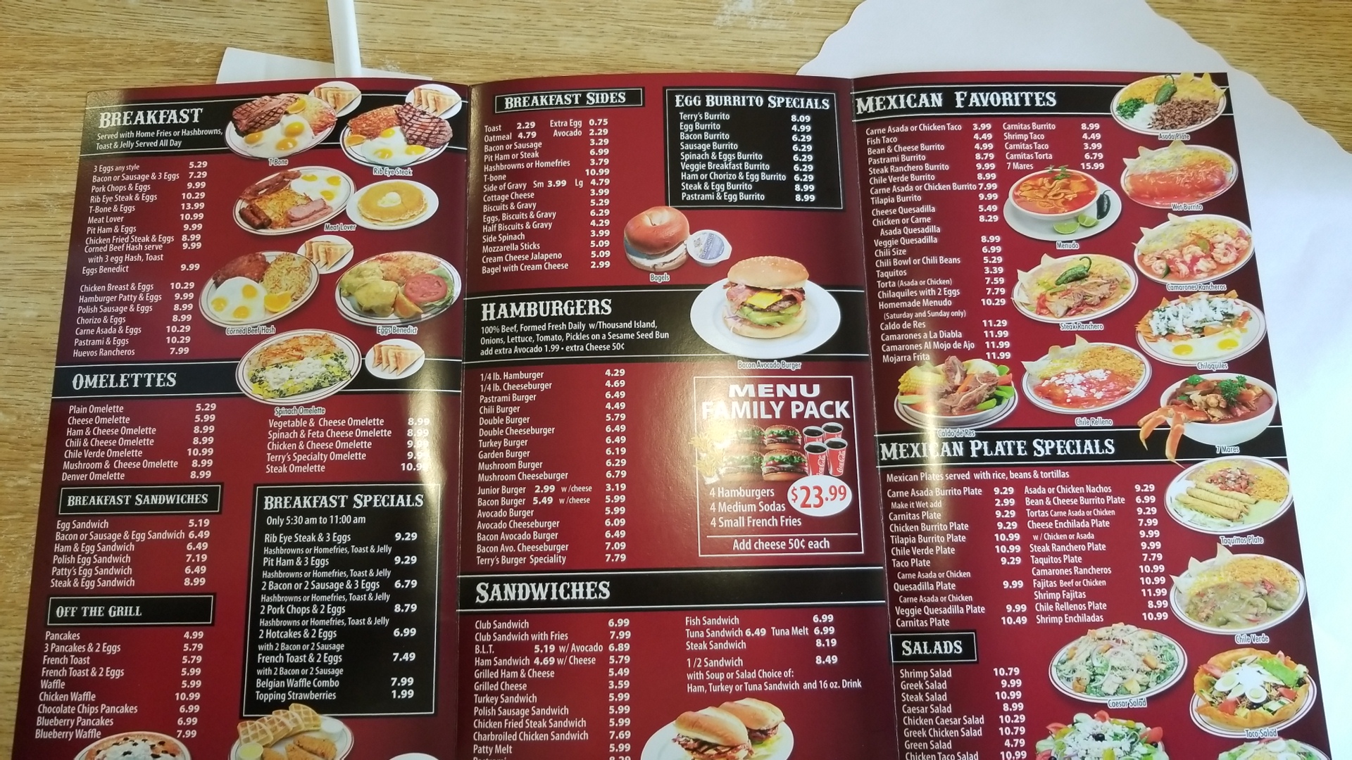 To be 100% honest I found this restaurant by accident, the other day I was asked to drop someone off further down the road on Western Ave. I noticed the big sign and the signs in the window peaked my interest. Loving to try new restaurants is my passion. So today I decided to purchase a couple of meals from there. Camarones rancheros plate and a shrimp salad. I did have a special request and it was gladly accepted. I am not a fan of beans so I asked for double rice. The prices was flavorful with just the right amount of corn, onions, carrots and salsa. Best tasting spanish rice I have had in months. Served hot which I appreciated and noticed immediately. The shrimp were arranged in a ranchero sauce teeming with 2 kinds of bell peppers, onions and tomatoes. The aroma of the ranch style shrimp made it difficult to drive home without sampling the dish. The food was piping hot which most restaurants these days fail in serving a hot meal. Because they misunderstood my order they gave me a complimentary drink to go with my meal while I waited. It was definitely worth waiting for, to get a meal that is wonderful from the first bite to the last was refreshing. No only suggestion would be to make the sauce with a bit more kick to the sauce, by adding jalapeños or other spicy peppers to enhance the dining experience. The employees were amazing and extremely friendly. Since I needed to wait a bit longer to get my food because of the mix up, one employee engaged me in a pleasant conversation while I waited. Unexpected but appreciated the family touch. I fully expected to eat the shrimp salad later for my dinner but the camarones rancheros quenched my appetite with leftovers to spare. I will be tasting the salad tomorrow and may have a review on the salad tomorrow. Looking at the shrimp salad and the variety of vegetables that were placed on it I am certain I will fall in love with this salad also. Everything about this experience was top notch. Portion size, service, friendliness and cost were all exceptional and begs then consumer to want to visit this establishment again and again. I will definitely return to try their breakfast menu, soon. Place offers American and Mexican cuisine plus throw in some seafood for good measures. If you are looking for great service with a smile, tasty food, inexpensive prices and large portions I highly recommend foing to Terry's Cafe, worth the effort. They even have a drive-thru for...