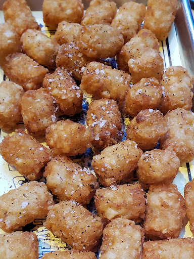 Notes for picky eaters and people with food sensitivities or allergies: The special "Mammoth sauce" is NOT Thousand Island and there's no relish in it. (Thank goodness!) It's quite tasty. (I called and asked and it's a mix of mayo, mustard, ketchup, BBQ, black pepper, and "stuff like that." It's good! Thankfully, no pickles/relish in it 🤢, and not too heavy on the mayo, either.) As much as I love garlic, the garlic fries are...a bit much. But smelled amazing on the drive home! I didn't notice any parmesan on them, as advertised on the menu.