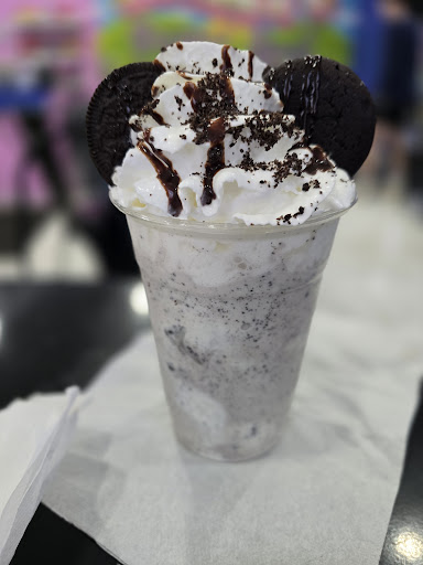Their signature shakes are thick, decadent, and come with wild toppings — marshmallow drizzle, crushed Oreos, caramel popcorn, or a full cookie balanced on top. You can customize or go with pre-named favorites like: