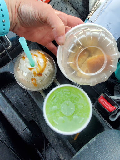 Ā Ā Ā Read moreStaff was friendly upon our arrival. 1st time Iām so wasnāt certain on what we were getting. We were offered a menu to look at. I got a pretzel w/ cheese sauce ( pretzel was good , I didnāt care for the cheese sauce but thatās just me. My son got a slushy drink that had shark gummies in it. He loved it! Super cute inside, loved all the turquoise decor. Super clean inside. Iāll be taking my son back for sure! He also got some popcorn which he chowed down on the car ride home. They have lots of Italian soda type drinks, frozen slushy/ice cream combos , great place to take your kids...
