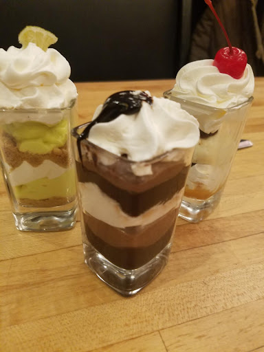 Notes: potatoes hot and fresh. Salad is extremely crisp, crunchy, you can taste the freshness and care. Steak hella juicy, tender, and the chef made a perfect medium well!. Crabcake app had a very complex flavor profile and tasted very good, sweet, tangy, light, and nothing sea-like! My salad was amazing. My pasta was pretty good too. The noodles they use make it more fun to eat. Desserts were awesome. If you've never had mousse before (fancy pudding), this would be a great introduction. These are key lime pie, chocolate fudge brownie, and caramel and vanilla cream. They taste wonderful and feel light on the stomach. Very great to finish. Each shot costs $2.50. I'd recommend just trying one of each. Getting the full 2 of each set is about $13. Overall price of this dinner combo: $~75-80.