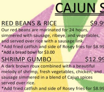 Read moreI am a food service professioal.I live on the gulf coast of Florida,and when we come to West Point we go to Rosey Baby to celebrate my wife's daughters birthday every April.It is our tradition of crawfish consuption,and creole food.Having lived in NOLa,and worked in the quarter my bar is pretty high for food quality,and in the past Rosey's impressed me,hence our tradition.However last year they ran out of crawfish,and lied to us about it.They served,and sold us appetizers,stalled us on our,and a half before admitting they were out of crawfish.So this year we called ahead.They assured us that they had crawfish so we gave them them benifit of the doubt,and went there.So an obviously untrained young lady starts by not writing down our order of 3 sweet t,and one half half t,and bringing 4 sweet t,she thens comes out with 2 lbs of crawfish that i ordered,however We all ordered 2lbs of crawfish ,but before we did we ordered mushrooms,alligator bites,and bloomin onion,Apparently no one trained this young college student that the appetizers come out first.The 2 lbs of crawfish I ordered I sent back to come out with the other 3 orders,Appetizers come out,and our bloomin onion is under cooked with raw flour still it so we send it back.After 5 minutes enjoying our mushrooms,and alligator our crawfish arrives,and one order is ice cold!The booth we were in was already too crowded for us and all our foid so we move to a lager booth.Soon as we get there our onion arrives still underdone;ie half cooked,but in spite of the small crawfish that were overcooked to the point of falling apart we ate them up.They took the onion off the bill.We ordered beignets in past years they were great in the past,but today they were satuerated in oil with very little powdered sugar.We asked them to take them off the bill.The owners did a table touch early some guy who corrected the sweet t with half n half,but failed to bus straw wrappers.After we go moved to the larger table a lady came by ,and seemed to emphasize with the onion problem,but never apologized,but did say they would take it off the bill.A good manager would have came to my table after the beignets fail,but nothing ..I would have discreetly spoken about these issues if they had so now as an object lesson I am going public!! The kitchen needs a manager to insure,and protect the integrity of the product.The servers must be trained by a training program .While having a town full of potential employees is convinient.The owners needs to bring in some veteren servers,and kitchen people.We will never be back to eat,and unless your in the college party crowd avoid this...