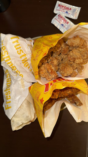 Read moreI’ve tried this place twice, once dining in and once for takeout. The dine in experience was definitely better. The first time I had the chicken sandwich which I really enjoyed (unfortunately I don’t have any pictures). The second time I ordered takeout and tried the chicken wrap, two pieces of fried chicken, and popcorn chicken. Overall everything was okay but the fried chicken pieces were extremely oily and looked very dark almost as if they had been fried multiple times (except for the red spots from the spicy seasoning: I ordered them spicy and they definitely delivered, which I appreciated). Bonus points for...