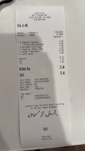 Read moreIf you're looking for truly authentic Pakistani and Indian cuisine in State College, Cafe Aline is the place to be. This locally loved restaurant is owned and run by Mr. Asim, a true maestro chef whose passion for cooking is evident in every dish he serves. Mr. Asim brings the rich, vibrant flavors of South Asia to life with remarkable skill and dedication. His commitment to authenticity and quality is unmatche, from the carefully balanced spices to the warm, comforting presentation of each plate. Every dish is prepared using zabiha halal ingredients, honoring tradition and providing peace of mind to those who care about how their food is sourced. Whether you're indulging in a fragrant biryani, savoring a creamy curry, or simply enjoying a hot cup of chai, you'll immediately notice the depth of flavor and heart that goes into the food. Cafe Aline isn’t just a restaurant — it’s an experience, built on culture, care, and culinary mastery. A huge thank you to Mr. Asim for bringing such an authentic and soul-satisfying dining experience to State College. Highly recommended for anyone who appreciates genuine South Asian cuisine!