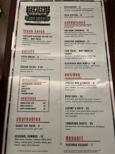 Read moreLast night my wife and I went out to Central Reservation. It was absolutely amazing. We were greated by a super hospitable and charismatic host who went above and beyond to tell us about the COVID precautions. When we sat down we were greeted by our waiter who was absolutely spectacular. He provided recommendations and made our experience so special. We asked for a speciality shot because we were celebrating and we were not disappointed the bartender came over and it blew us away. Followed by the food. OH MY GOSH!!! The warm corn salad is to die for and my wife said the cevice was AMAZING. Even the cheeseboard was a beautiful masterpiece. I also have a severe seafood allergy and was insanely impressed with how they handled my food. We asked our waiter if there was a manager or a way to best share how amazing he was and Central Reservation and found out he was the owner. This level or care for details and the customer experience is hard to find. I love local places and I think my wife and I have found...