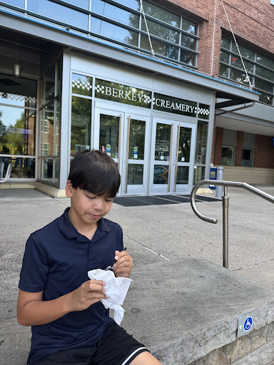 Second, all I wanted was one scoop and I thought this would be the default. I bad for making assumption I suppose. However, the student working the cashier did not confirm one way or another just rang me up on a price of $5. I thought that was rather expensive for a single scoop, I shocked it up to being at a learning center test kitchen so being a little bit more price paying toward the experience. When I ended up getting the ice cream it was a massive massive stack of multiple scoops. For more than intended definitely throwing off any meal planning that I'd had for that day. And again in short not at all whether they gone in with no one confirming with me what I was looking for.