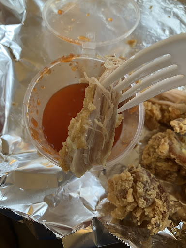 We ordered the single portion.There’s easily a pound or more of boneless fried chicken pieces, along with a generous amount of crinkle fries. The chicken is juicy, crispy, and stays crispy, hot & fresh in the takeout box. The fries looked underdone, but were perfectly crispy on the outside, and fluffy on the inside.