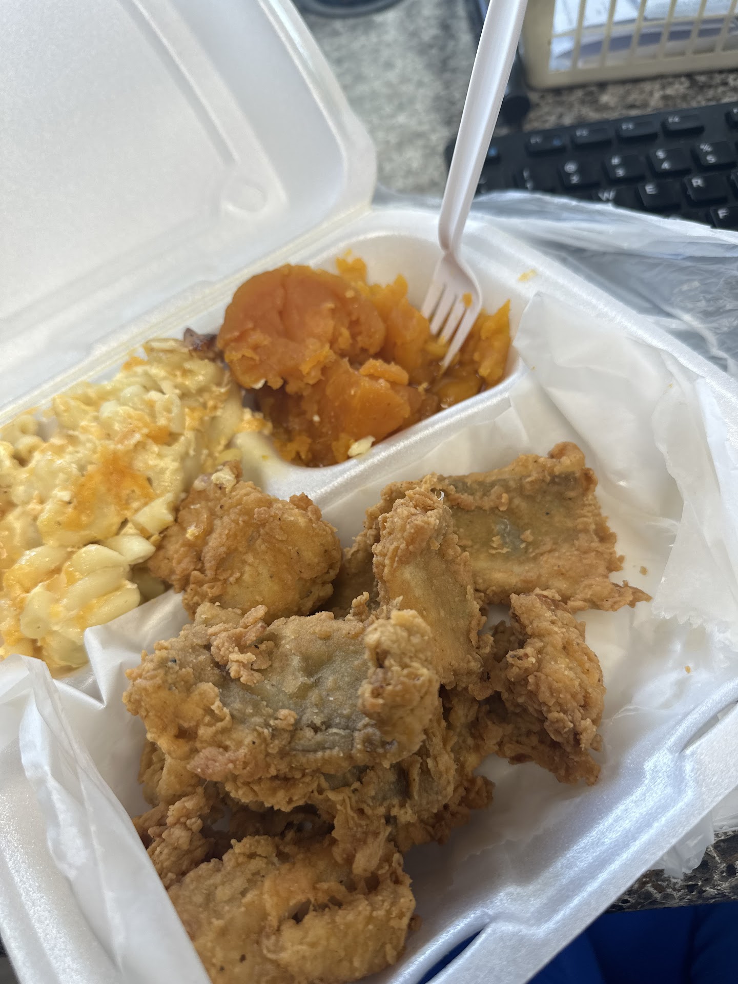 Read moreOMG!!! RUN!!!! I love to support black owned businesses, but I will not return unfortunately. I arrived around 6pm. The prices are unnecessarily expensive for the area it’s located in. For $20, I am fuming!!!! I ordered the fish dinner. My sides I desired, was unavailable. So, I chose, potato salad or mash potato salad and Mac-n-chs ( tastes like it was cooked days ago). They brought me my food and the fishy scent almost took me out!!! The cornbread was so old, it just crumbled like sand. They had no to-go-bags for the dinner and the bag that my cornbread in was all ripped like it came from under the sink. Even though the served me 1,110 pieces of fish, it was sitting in the preservatives all day. It was sooooooo greasy, till it was a lil lake of grease in bottom of the box, due to the “cooked to...