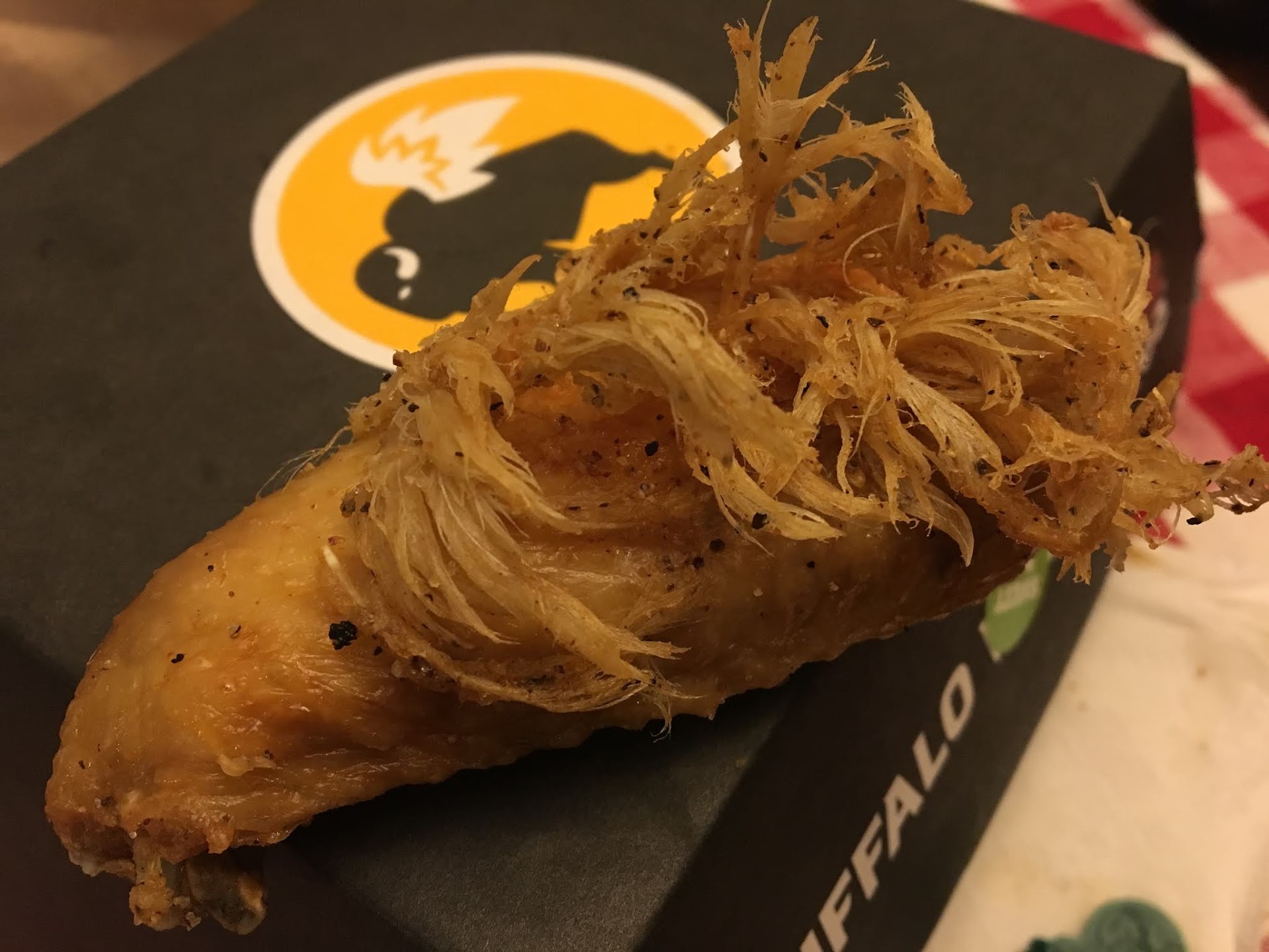 What does this look like to you? At first, it may look like meat, but if you look closely, those things popping out of the chicken wing are all feathers. I called the restaurant to ask about the issue and a man who was supposedly the manager told me that it was okay to eat it in a rude tone, as if I was really weird. I wish he could have seen the wing himself! I thought maybe I was the picky one so I sent the photo of the wings to some friends. They all said that it looked disgusting, so clearly I'm not the weird one here. The manager told me that they could remake our order, but I'm not in the mood to eat those after looking at this mess, so I went back to the restaurant to get a refund.