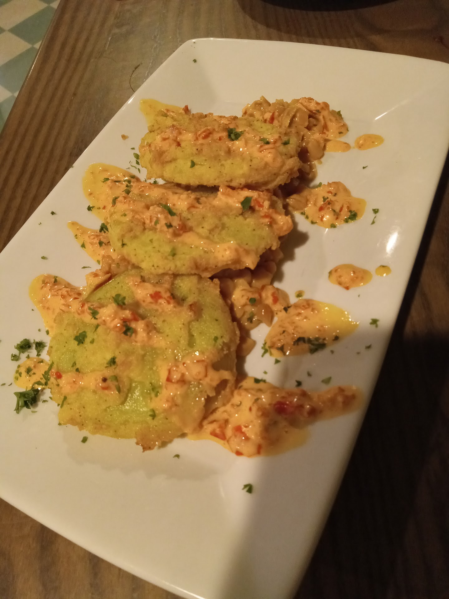 When we ordered dessert and got the beignets we ordered a few different sauces and were charged extra for them which was no problem if we had gotten the correct ones. We ordered four different and got two vanilla bourbons and a raspberry and never got the 4th.