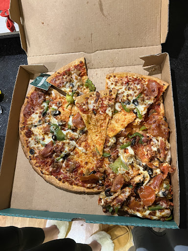 4 trips in here for carry out, all similar results. I tend not to post negative reviews after just one trip. Tonight will be my last stop here. Online showed that my pizzas were ready 20 minutes after the order was placed. I walked in to pickup to be told it wasn't ready. No big deal. 40 minutes after the order was placed, I got the food. Nearly no toppings on the pizzas. Just enough to know they're there. 1 hair in a pizza which was nasty enough but as I was checking my pizza and leaving I watched a guy in the back drop a pizza box he was folding on the floor, face/inside down and proceed to fold it and put someone's pizza in it. Prior experience was similarly long waits, poor attitude on one trip, and 2 of the 4 time pizzas weren't cut at all. Just the cheese mashed flat. Once or twice is one thing but not 4 in a row. I'm not from the area, just frequently pass through. Do yourself a favor and go to Domino's...