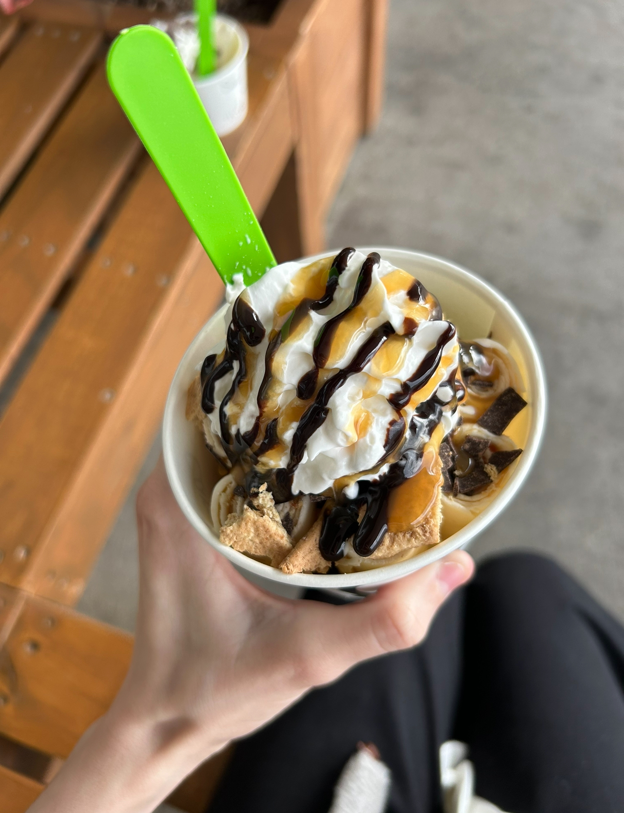 Also, the dairy-free ice cream tastes like corn syrup. I'm glad they offer it, but it lacks good taste. Regular dairy-free ice cream scoops are much creamier and richer tasting. They have a lot of vegan toppings, though, and toppings are unlimited! This was a nice consolation for...
