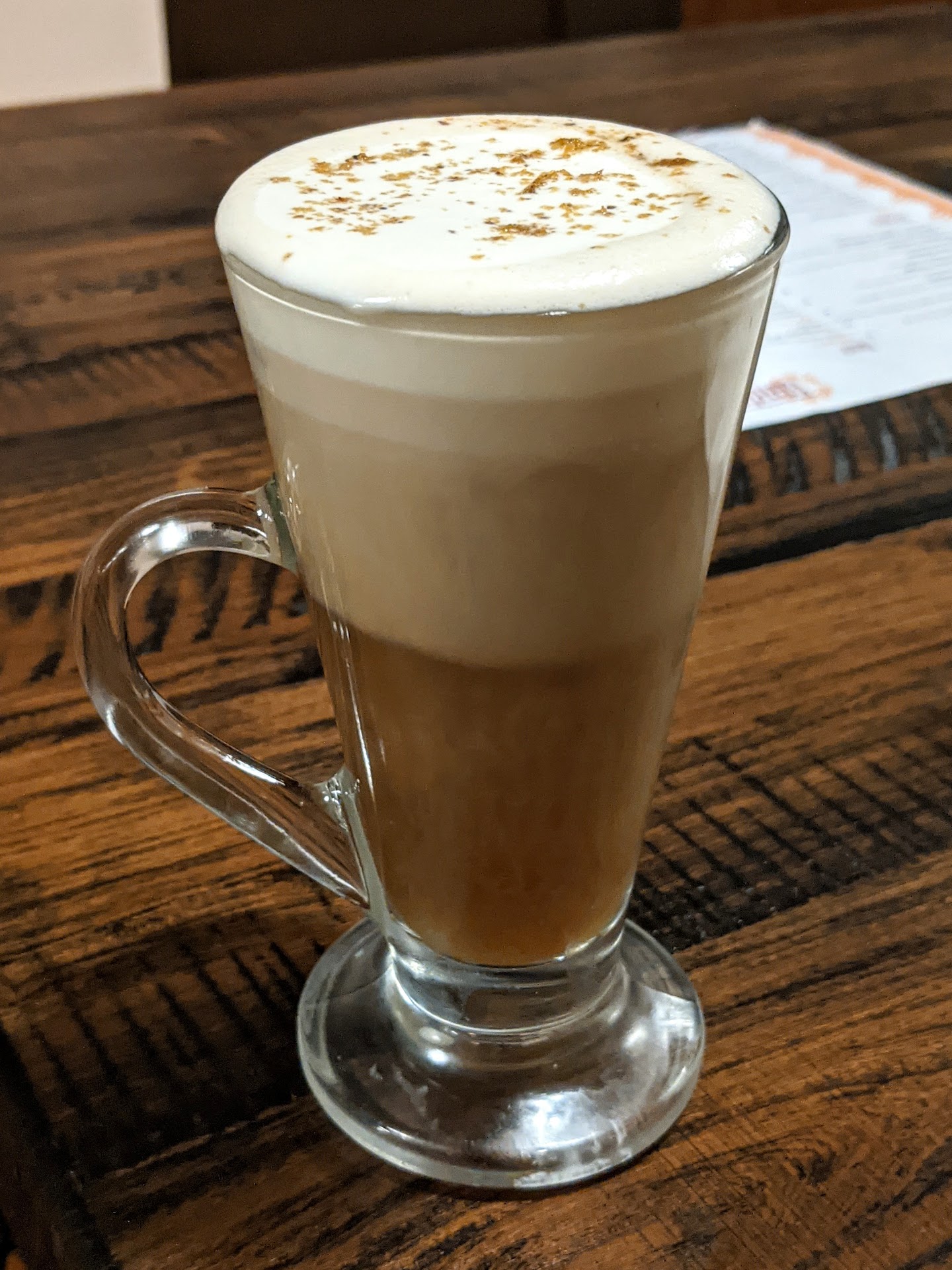 The menu: OMG! So many tempting offerings, it was difficult to make a decision! We started with two appetizers: Garlic cheese naan - stuffed with cheese and topped with ghee, fresh minced garlic and cilantro. This was incredible. I could exist on this bread alone forever. The other app we shared was the vegetable samosas - two deep fried turnovers stuffed with seasoned potatoes, and green peas. Also very good. We each ordered a cocktail, Coffee Masala, which was amazing! Bourbon, demerara syrup, coffee and cream topped with cinnamon (I think) and pistachio crumbles. It was absolutely yummy, but I would recommend this for after-dinner, as it's hot and would be the PERFECT finish to a great meal. They have a very enticing bar menu and I look forward to going back and trying their other specialty cocktails. They also carry a nice selection of local bottled brews and a house-special on tap. For our entree, we both ordered the half chicken tandoori. The presentation is lovely - roasted in their clay oven and served on a sizzling platter. Everything is a la carte, so we ordered delicious Basmati Jeera Rice - cooked with cumin seeds and whole spices tempered in ghee.