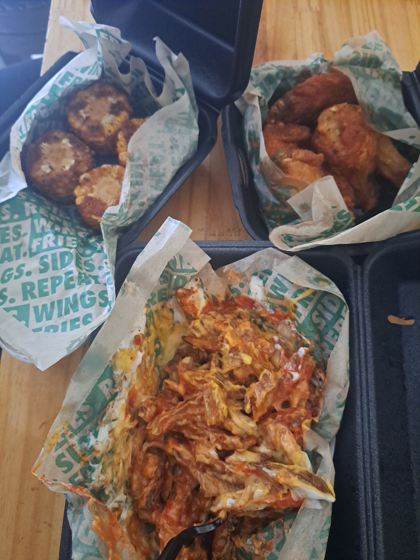 Read moreONLINE ORDER:. We had made a mistake on our online order and called to have it corrected. They were not able to assist and we had to make an entire new order and had to pay an additional delivery fee, the food also was delivered separately. The second one was placed on our front porch and no doorbell was rung. We happen to have a camera so we seen the delivery made). I feel the online services need better support and better care on how itâs delivered. IN STORE/IN PERSON: We were welcomed with friendly smiles and faces, the service was fast and prompt. We sat inside to eat. There is not a lot of sitting available (Im guessing there were about 6 or 7 tables, kind of reminds me of the sitting available at Rolling Monkey, but entirely different environment). The Parmesan wings were excellent and had more fries than I could eat. Overall I give them a solid 3 star, as the online and delivery service needs much work, not really a good dine in option (so I would suggest a âpick up to goâ option) , in person service was definitely better. As for myself, Im not sire if I will go back as we have several options in our...
