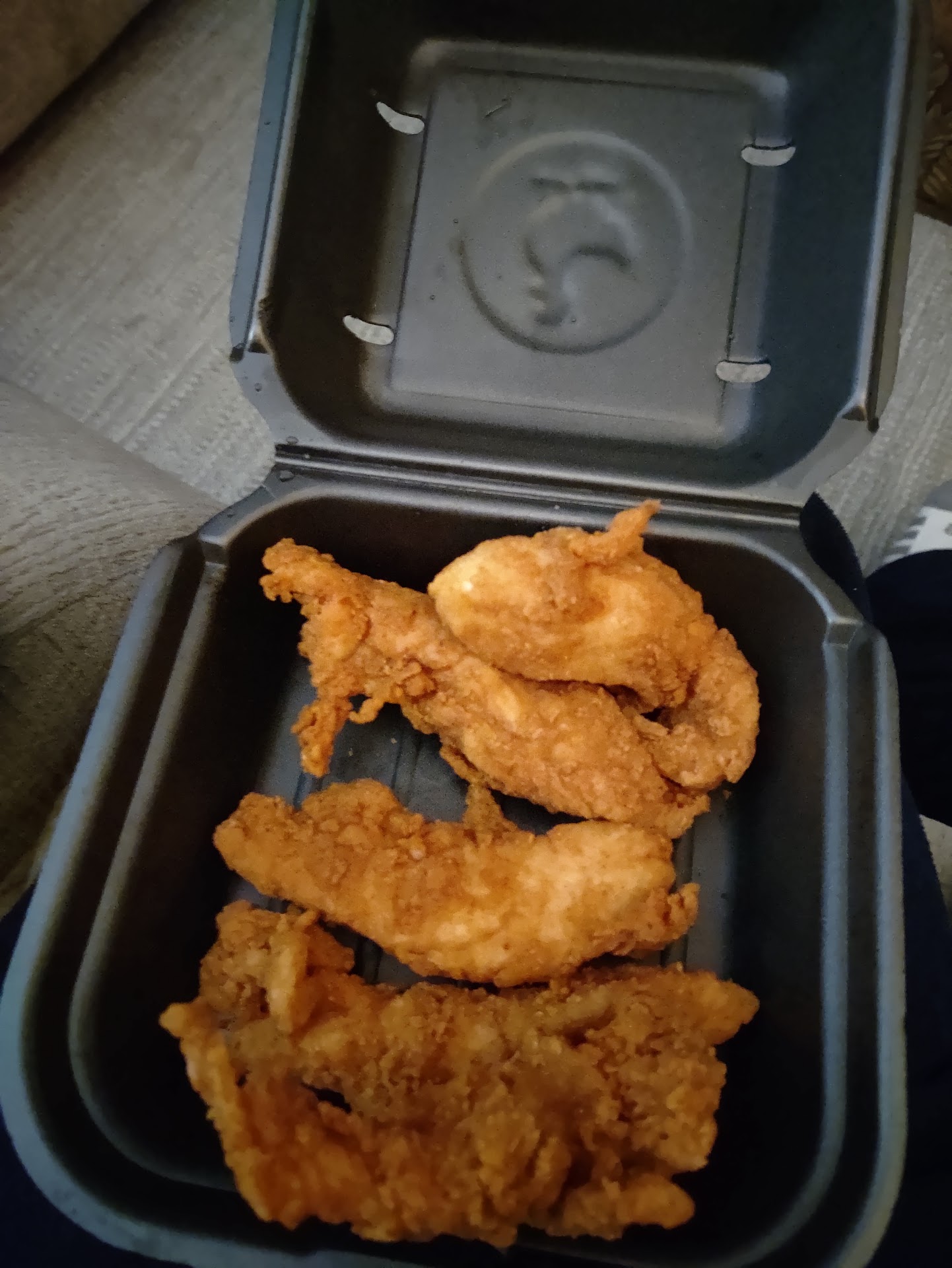 Read moreSo I ordered for pickup. The line was backed up. I was in line for 20 minutes. While sitting at the second window, I look and can see two employees visibly on their phones. I finally get home with my food and my fries were under cooked and really soggy, chicken was over cooked, the fried pickles did not taste good (I’ve had them before many times and never had issues with them) and my drink was filled all the way to the top with Ice. I barely got a few sips from it. Seems like the only thing that they did right tonight was the toast. Seems as though many employees are need some retraining or need more employees on busy nights.