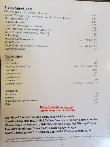Read moreI had been there couple days ago and the two cheeseburgers and fries was good just glad the hot spices didn't get on sandwiches as I'm allergic to any spicy hot. I live almost in Rowan so it was a inconvenience that I had to throw the fries away and not its not a meal. I would thought as a good business practice if you sold a meal and they had to throw half of it away you should replace a meal ( sandwich and fries) this didn't happen and I...
