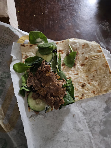 I ordered the steak and cheese, I feel like I had to walk them through the entire process. I asked them for shredded cheese and they said that the flatbread could not be toasted. I then asked, well, why can't you put the cheese? And the steak on the paper and then put it in the oven. They said, oh yeah, we can do that. Then they started making it as a rap, and they did put mayonnaise on which I did ask for, but I told her I wanted flatbread, so then she moved .everything that was put on the sandwich And added more mayonnaise that I did not ask for leading it to be extremely too much. Then her telling me most of it got on her gloves, which is why she added more. I understand your thought. I feel like I should have been asked first!! My food had to be remade. She then told me how she is allergic to flatbread and got a big sniff of it, and that she was not ready to have a migraine. If you are worried about a migraine, then you shouldn't be working there.We're a place you have to deal with the food you know that gives you a migraine. And I get home and this is what I have. No steak! I would of been better off getting just toppings on it instead. At least then it would of been full. $12 was waisted. I could of gone to McDonald's and...