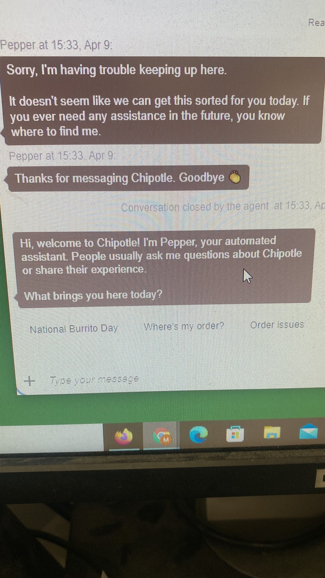 Read morei don’t normally post reviews, but this place is ridiculous and after seeing other reviews i am not shocked whatsoever. i placed an order through the mobile app for two burritos and a bag of chips and queso. after arriving WELL after my order was supposed to be due, i had to wait way longer than i should’ve to be helped at the drive thru window, and was helped by a lady who hardly speaked english (bless her heart because she seemed to be the only employee actually working as everyone else was chatting in the back and being lazy for customers to see). i pulled off and got home only to realize they not only forgot my chips (but gave me the queso still?) and wrapped both of my burritos that were the size of a donut WITHOUT labels so we had to open and pick apart the burritos to figure out which had what toppings. and it’s crazy because we managed to actually wrap them up better than the employees did!! they also put guacamole on my burrito which literally costs extra and i didn’t ask/pay for and hardly gave any protein in my boyfriend’s burrito. after calling the store to speak to a manager on shift i was directed by an AI robot who said to go to my email and figure out their crappy service bot (that sucks by the way) while, and i quote, “the crew focuses on working in store to continue making burritos and bowls”???? what kind of crappy customer service wont even allow unsatisfied customers to communicate with the store, and clearly someone needs to get in contact with corporate and shut this location down or completely re-staff the entire building because the employees that were supposedly “focusing on making burritos and bowls” were chit-chatting behind the counter with no regard whatsoever. completely ridiculous and i’m so surprised this location is still in business. if any management sees my review (which i doubt because it seems they are only concerned with reviews that involve legal issues such as food poisoning or whatnot), i’d appreciate a response or some action taken to resolve the poor service and quality...