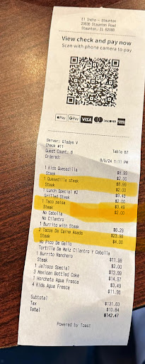 Read moreThis is a good place to go if you want a good entrée, but don't care about anything else. My mom complained that her margarita was bland, and my dad's was nowhere near exceptional, as so many others are saying. The artwork definitely could have been better, only the piñatas on the ceilings are artwork looked Mexican. There were no decorated walls or booths, not what I would expect from a highly-rated restaurant. The chips and salsa were very bland and the chips were without flavor. The servers are very hard to understand, and they can't understand you. My mom asked how spicy the salsa was, and the waitress left and brought hot sauce. It was very hard to order drinks and food and when the waiters asked to make sure the meal was correct, they were always wrong. My mom asked the waiter for the best entrée in a section and he left without responding, not understanding the question. I ordered water (I do not drink soda), yet the waiter kept on asking if I wanted more Sprite. The waiter also took half full chip baskets to replace them. Finally, the ketchup that comes with the french fries are packets, not bottles. I would NOT recommend this and...