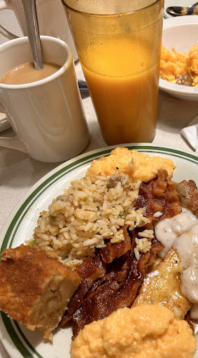 Read moreI had not been there before today. I got to the front. was not greeted by a hostess. but a girl wearing a maroon shirt. she had her back to us and acted like we were bothering her. she grabbed the menus took us pass the food bar to the back. the room had a foul Oder. tables had not been pre bussed. the waitress was quick and polite. took our order. we went and looked at the buffet. the gravy looked old. and I was scared to eat the food. now I have worked in restaurants since I was a teenager. I even open a few. so here some advice take it if you want. 1.) people first impression is important. 2.) people eat with there eyes 3.) it only takes one bad review or word of mouth. know I hope you keep an open mind. here are ways to fix your problems you can clean carpets , put up a hostess stand, clean windows and booths ledges. now for the food bar. keep the bar tidy and all the stuff rotated out. not have a girl yelling into a mic. looks tacky. stir and change food pans . sauces and soups should be changed every 30 minutes. the hostess should keep bathrooms tidy. clean pie cabinet out. ...