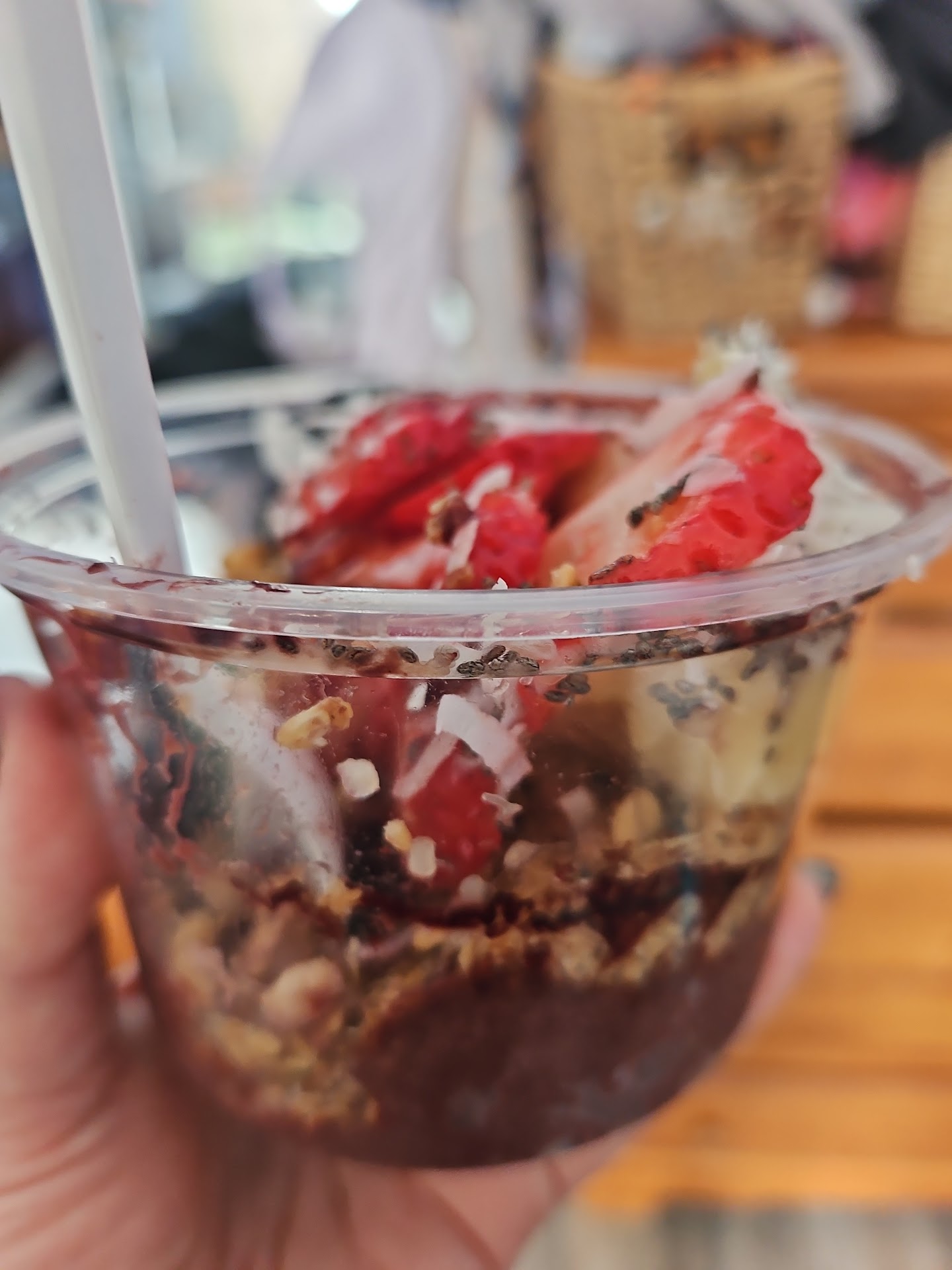 Several of the items we requested were out of stock, such as Acai. I went with a pina colada bowl because that seemed to be all they had. Unfortunately almost 3/4 of the bowl was just granola. There were three slices of strawberries and two slices of banana. The service was extremely slow. We opted for a pre-made juice as they were out of stock with so many items to make my smoothie. The menu looked good. I was looking forward to a great acai Bowl and my son a Fresh Smoothie. Sadly, we will not visit this...