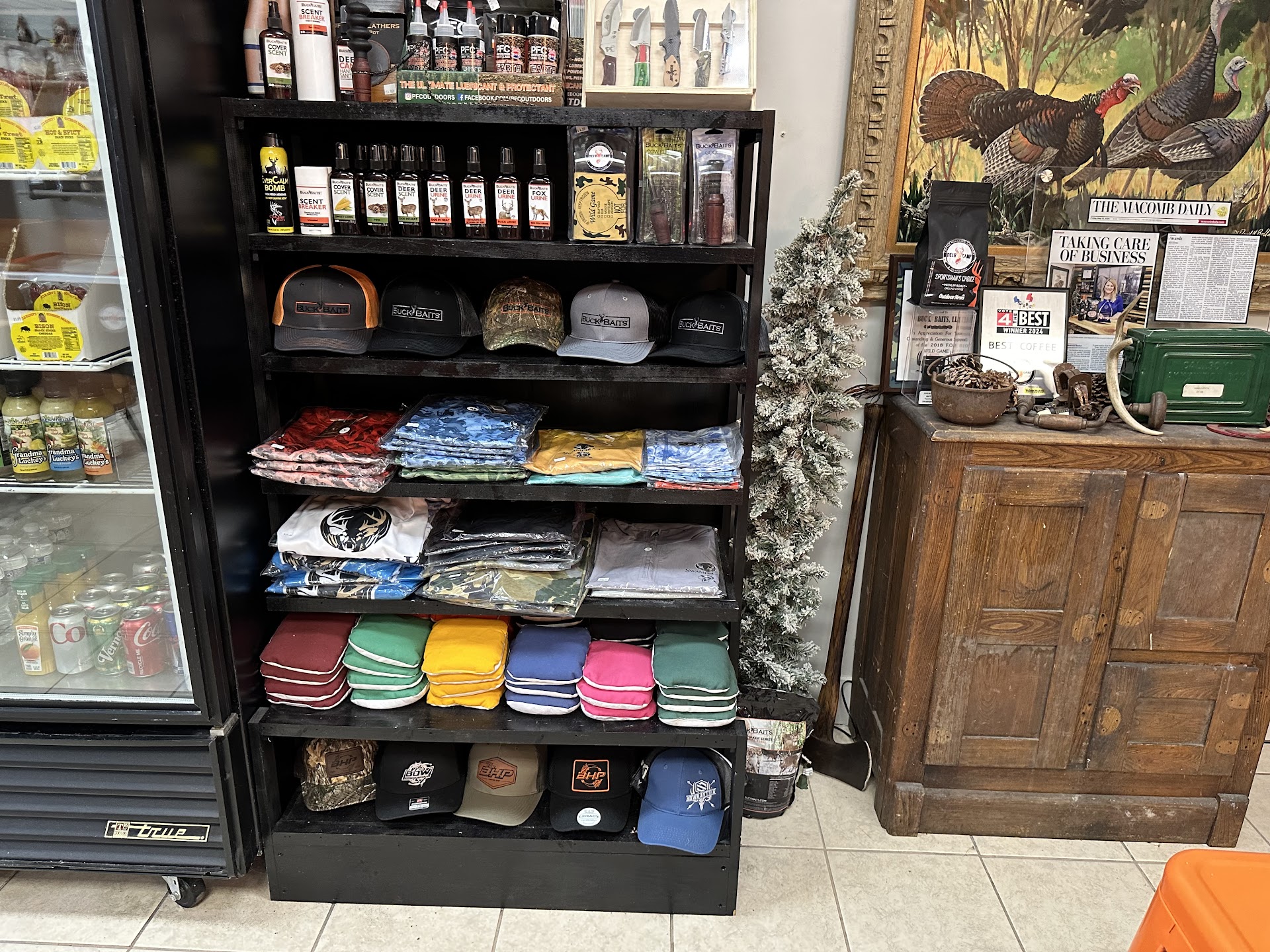 If you are into hunting, well look no more. There are gifts galore for the hunter in your life. I saw knives, deer scent spray, apparel, jerky, you name it, they have it.