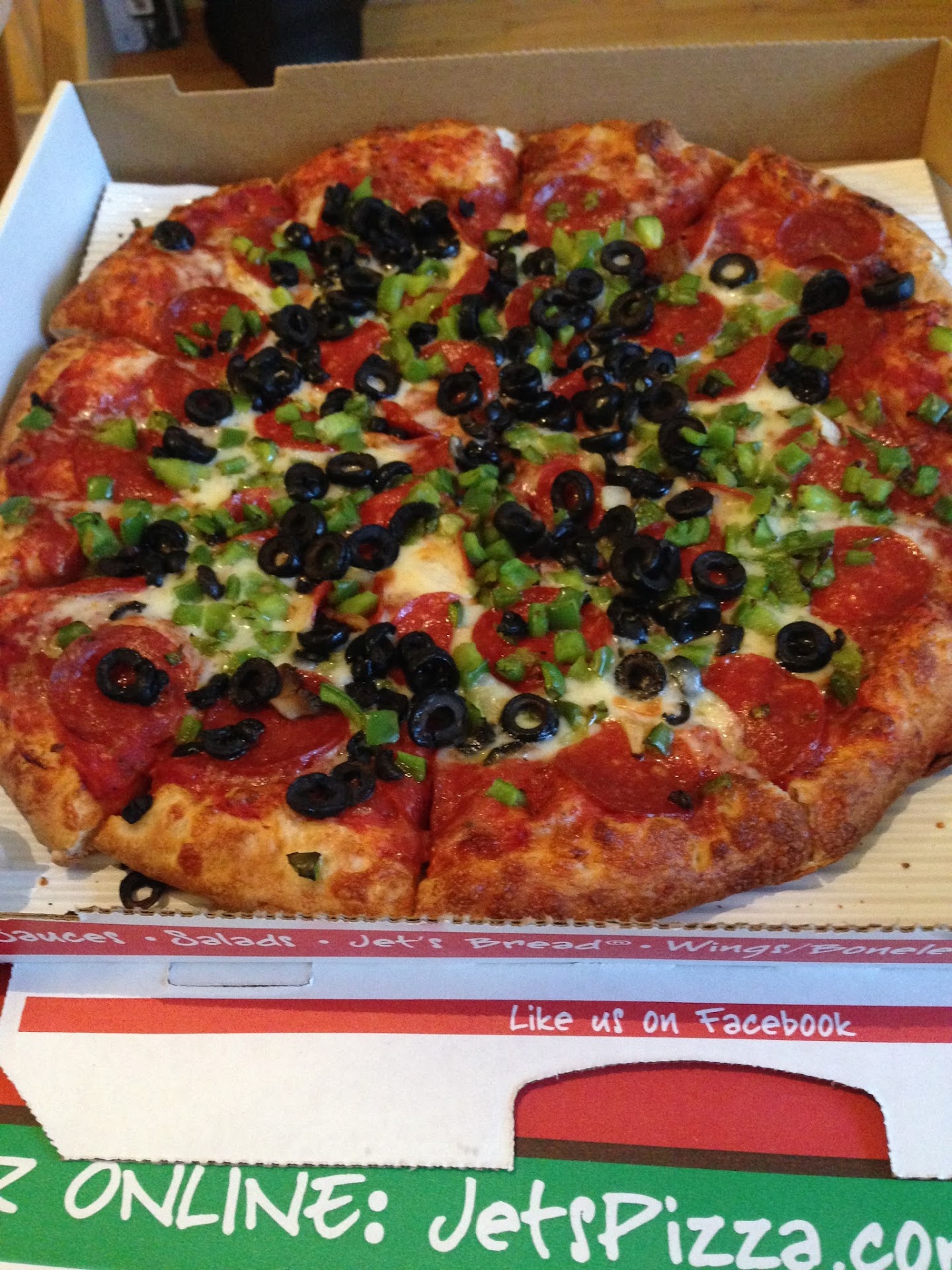 Read moreWe have ordered Jets pizza for years, but this location is disappointing because they are so skimpy with their toppings. We gave them many chances to do better and even paid for extra toppings only to not see any difference. When we ask why. The reply was... "We just don't make it that way." Really. :( It would be nice to know that before we paid for the extra toppings that we did not get. So we have been going to other locations when we are in the area. Here is a picture of the kind of pizza we get from another Jet's location and we did not even ask for extra toppings - it just came this way. After asking about why this is... it seems the best Jet's are the ones not...