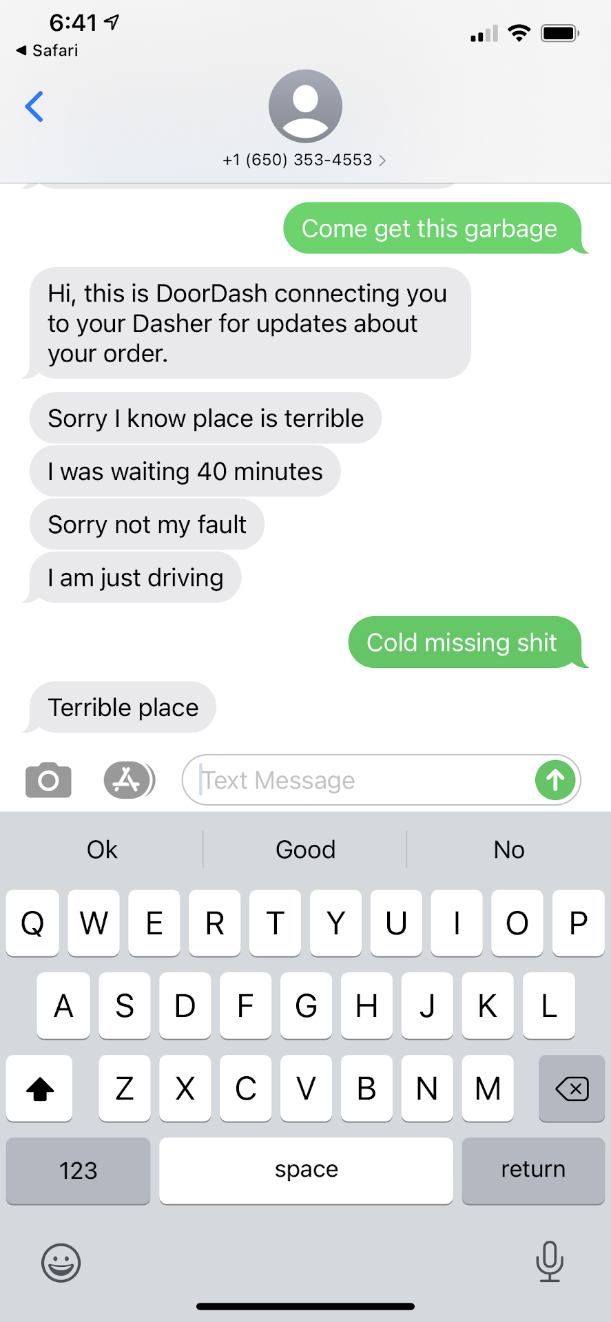 See screen shot below of the conversation with driver seems he has been here before. Lol