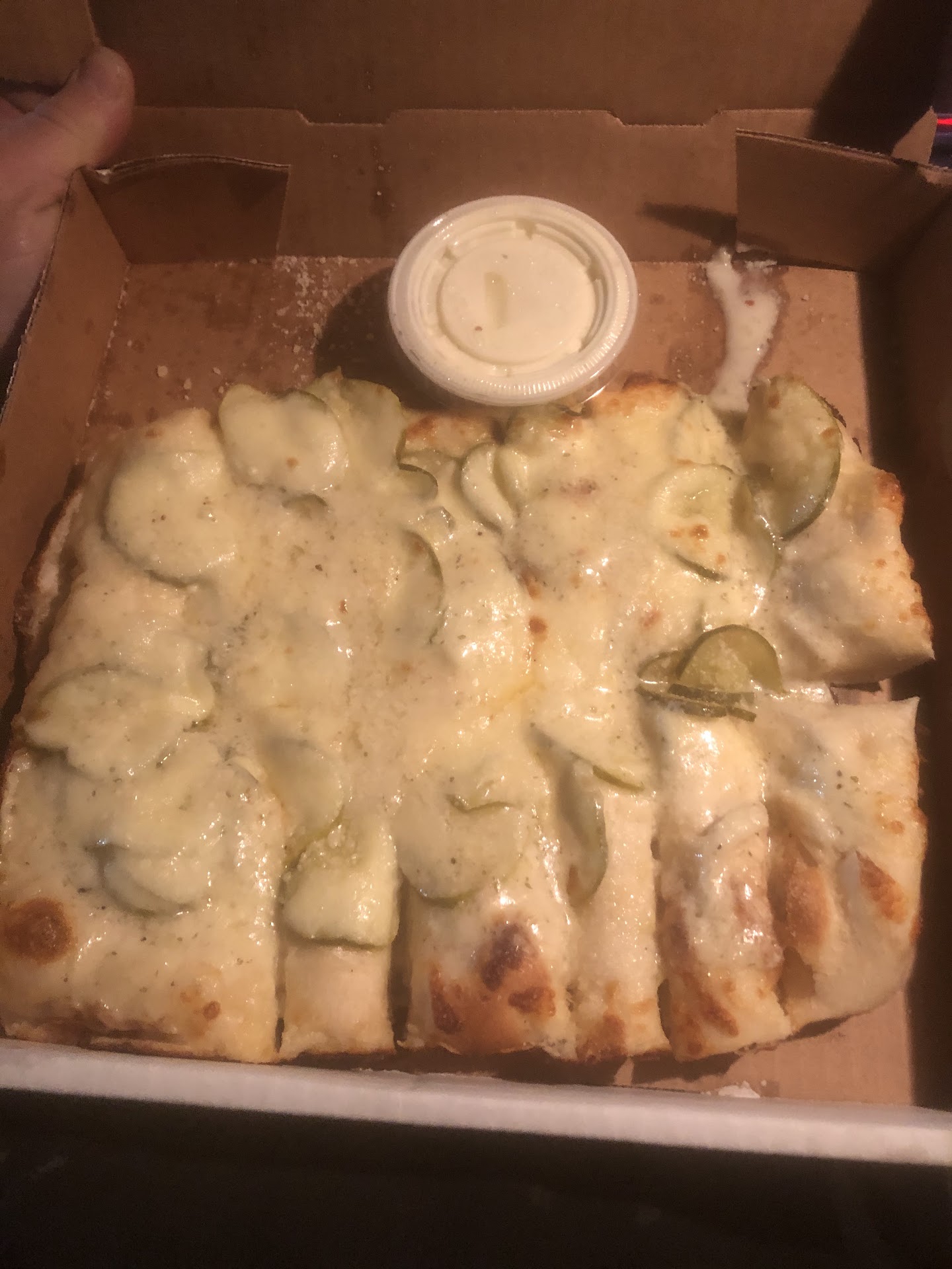 Read moreGoogle ratings do not meet my standards. I rate this place 4.5 stars. Here’s the run down. Found this place online. Headed over there to check it out. Pull up and a guy is out front with pizza shirt on. Sweet ! His about his business. Kinda roll down the window he greets me. (Inside is closed Covid-19 ) nice guy. I read the menu and wasn’t that happy with it. There is to much information. If you do pizza best put it right in our face. Needs to predominately be pizza choices with more pizza photos. Menu needs work. I call the number another guy answers. He seems a little burnt out and he couldn’t hear very well. I was looking for advice from him on what to order. What’s unique ? What’s new ? What are you know for ? Not much input or even a suggestion. He recommends cheese and pep. To cheer me up. Ok fine. I order round cheese and pep, square cheese and bacon, and something I haven’t seen. Pickled cheese bread. Not a huge pickle fan but I had to try it. Place was pretty busy so he has some regulars for sure. The crust of the square was good, the cheese was also good. However the round was the better of the two. Shockingly the pickled cheese bread stole the show. I probably liked the bread a little more than the pizza. I didn’t think that was going to happen. On the negative side they put the ranch in the box so it gets hot. Nobody likes hot ranch. Overall rating is 4.5. They did a good job and I will update the next time I’m...