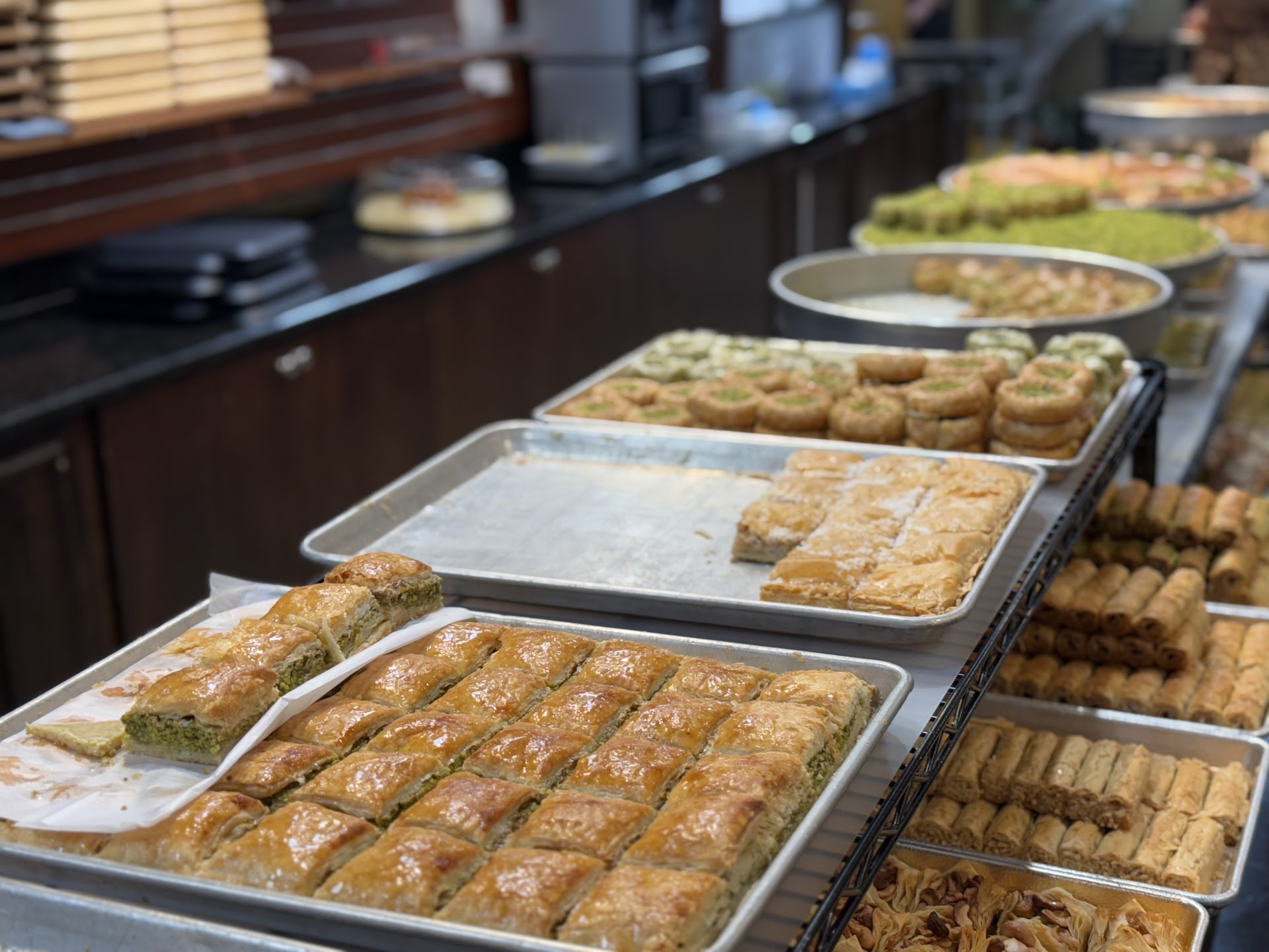 was there yesterday and bought baklava that costed me about $220. It's more expensive than Hafiz Mustafa ( a well known establishment for baklava in turkey). I place orders from there and have them shipped to the United States and would still cost less. Anyways, while I was standing there not even once the person who is filling the boxes handed me one piece for tasting. So I wanted to test his mannerism and generosity and stated to him that he's making me hungry with filling these boxes and not even once he offered me a piece. In arabic it's called karam al deyafa and that was lacking. I travel a lot and I'm accustomed to any place I travel and order in bulk, they hand you a piece while your order is getting ready. Nevertheless, the baklava is delicious and pricing should be a bit more fair.