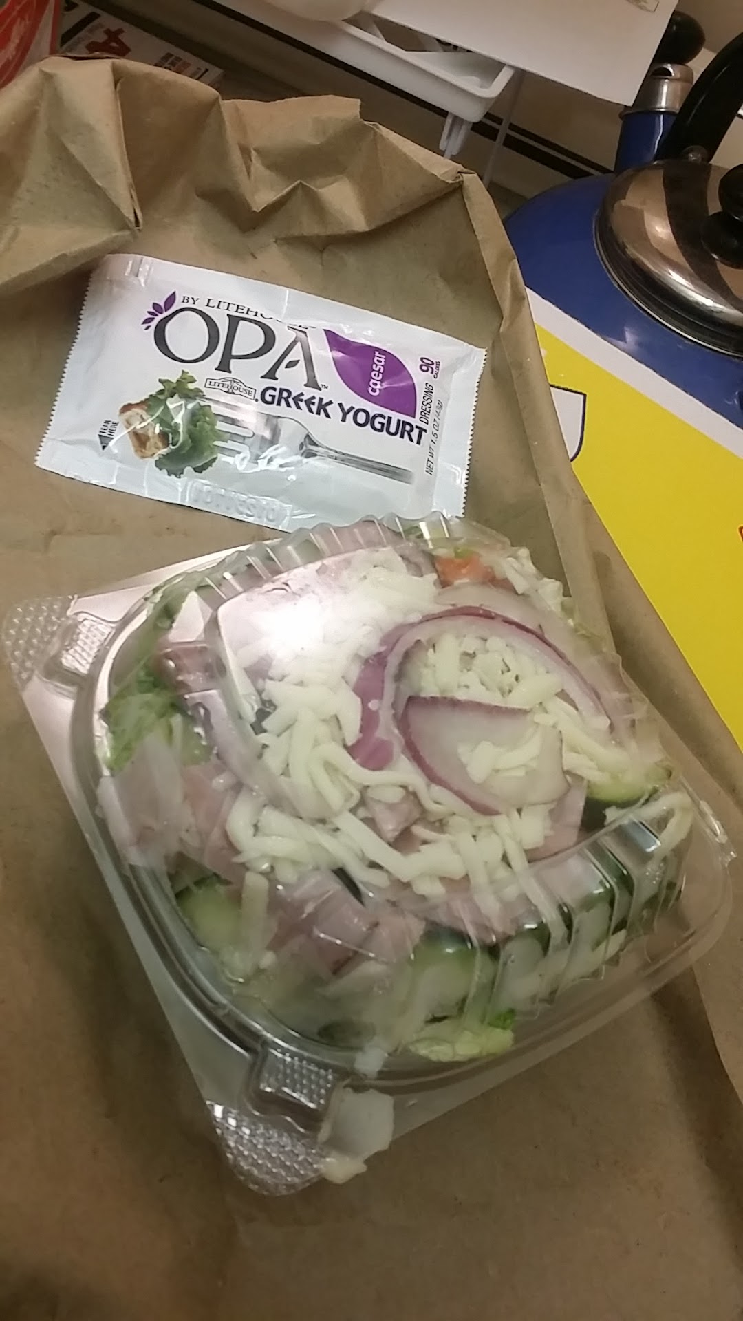 the individual sized chef salad was packaged in a small plastic clam-shell- packed completely full_ so u can't eat the salad out of the container- in fact- when u open the container the salad will fall out_ will have 2 transfer to another bowl to eat, add dressing and toss. (haven't eaten the salad yet - but it looked fine.)