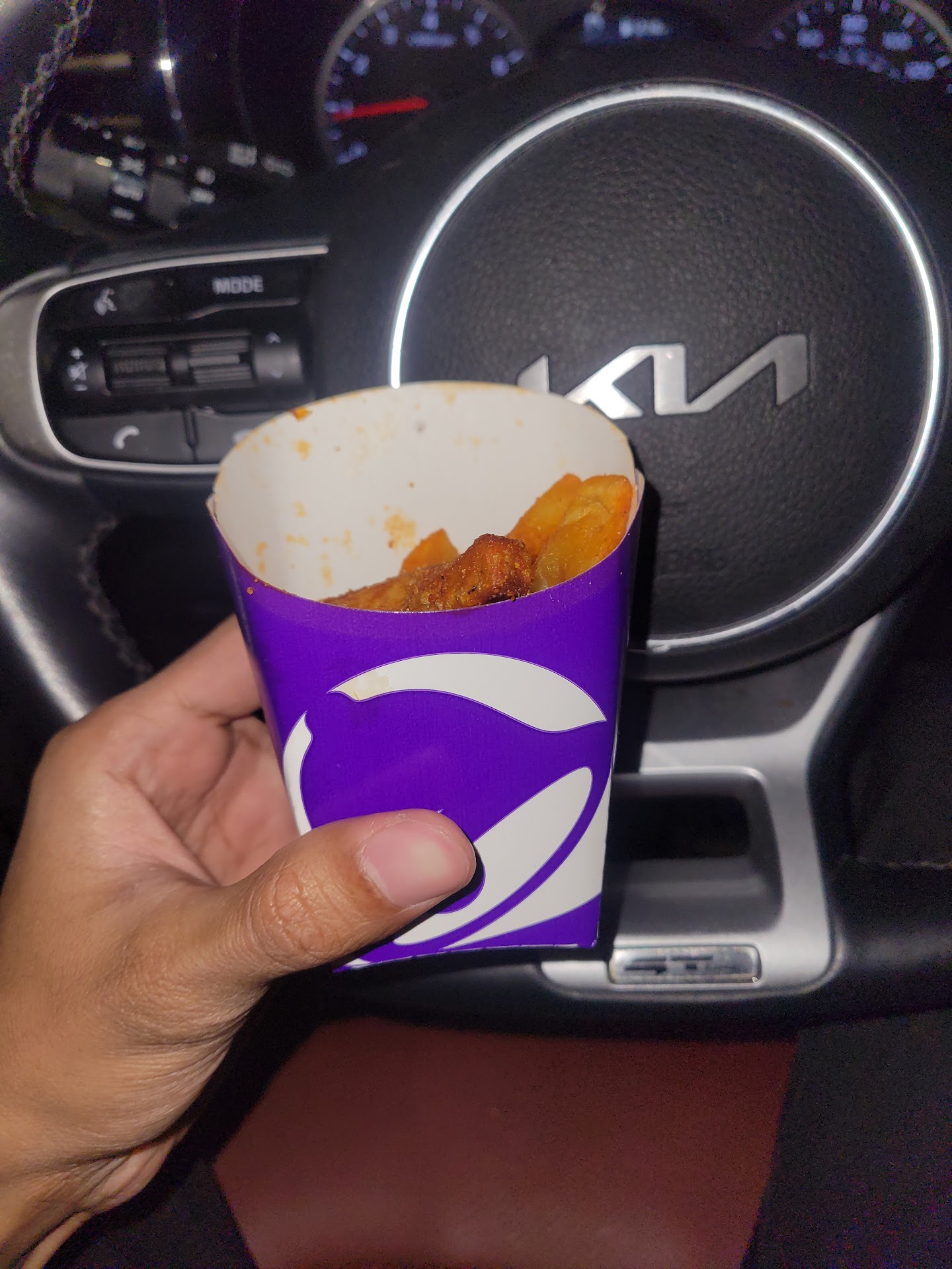 Read moreTrash⌠theyâre so rude to DoorDash delivery drivers. I was in line because itâs almost Midnight. 11:53pm to be exact and they told me after waiting in the long line that they couldnât give it to me through the drive thru. FYI there is NO WAY TO EXIT THE LINE. Mind you every single Taco Bell is different as far as Libby close times! Itâs a single file line with a curb. I asked them what their reasoning of why they couldnât give it to me this one time. They said the order may not always be ready. Excuse me isnât everyoneâs order NOT READY who enters the drive thru line???? Make that make sense. Fly. Once I finally got out of line I went in and it was right there. So point is they were just being like that to be like that and shame on the manager. There was no reason at all he couldnât have just been a decent person after I waited in that line. Corporate needs to change these rules bc it absolutely makes zero sense and zero...