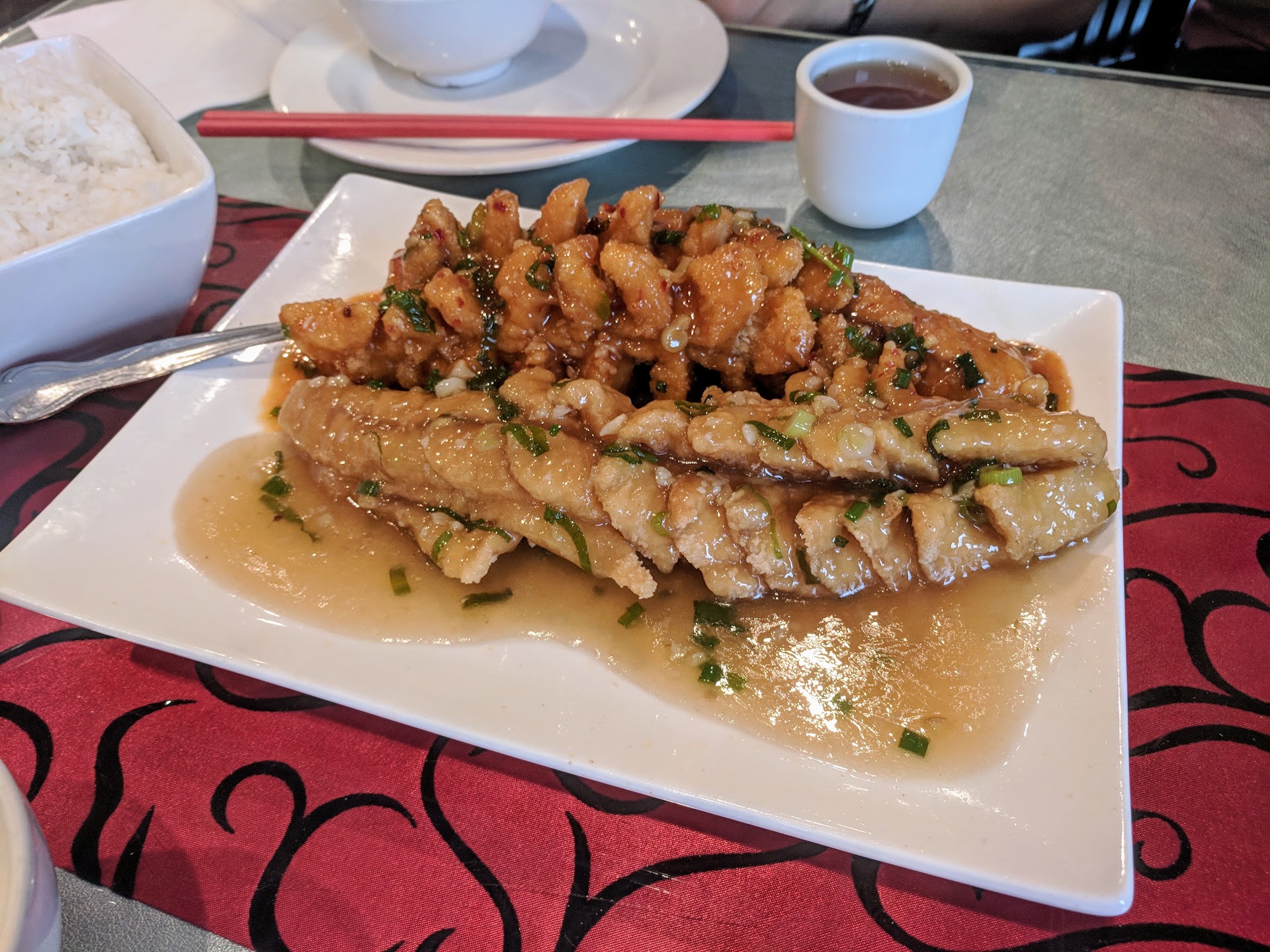 All I'm saying is if you really want to be wowed, try some AUTHENTIC dishes that make this place special, like squirrel shaped fish with sweet and sour sauce, the classic mapo tofu, or even the bubbling pork intestine & pig's blood curd in a wok if you're feeling brave! If you want to ease into the spicy, oily word that is Sichuan cuisine, try something a little easier on the stomach like chicken with spicy sauce (å£ę°“éø”) or spicy chicken (you be the judge if you can handle this spiciness). If you're new to Chinese food in general, try something that isn't spicy like tofu and pork with vegetables in a pot (so yummy). Ask the waitress/waiter for some hot oil to test the waters before diving in. And if you're just really scared, go for the least scariest thing on the menu that isn't what you're used to eating at every other Chinese place. Variety is the spice of life, after all!