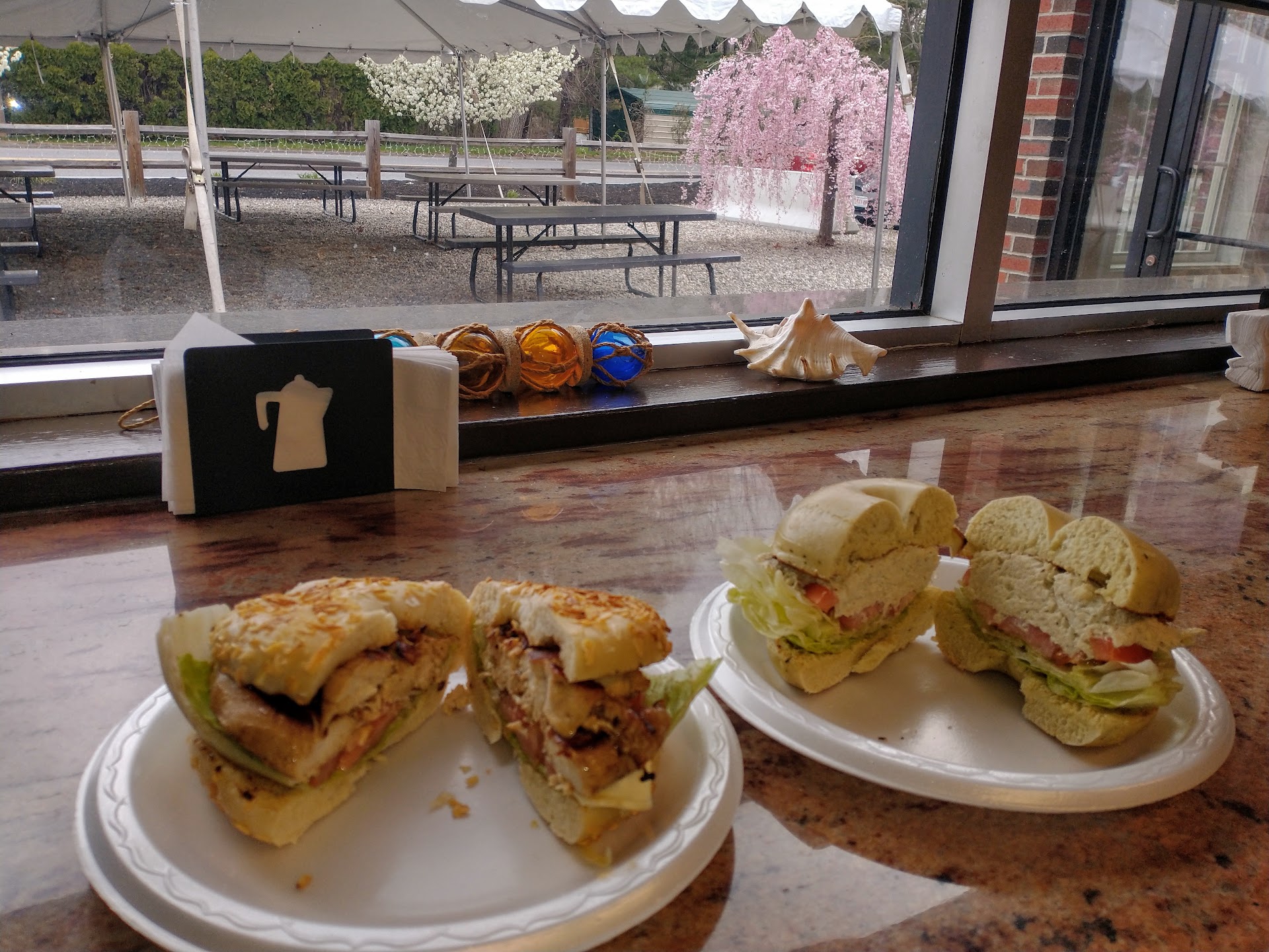 1 toasted bagel with cream cheese turns into 2 of them...black coffee turns into coffee with cream...it's simple stuff.kind of hard to mess up especially when you're the only customer there.