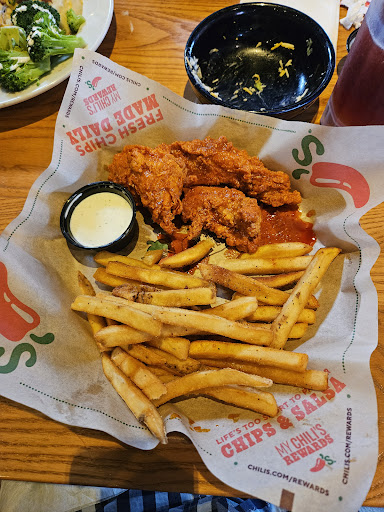 My girlfriend and I had just checked into the nearby Residence Inn after a long day of driving cross state from Pennsylvania, and we were too tired to make a grocery run and fix the evening meal ourselves. We looked within the immediate plaza, but there were no gluten free options. My girlfriend is the one who has the sensitivities. She said "why don't we go to Chili's" as they do have gluten-free options -at least, they do in Texas where we are from, and those options are clearly marked on the menu. There were no marked options here. We ordered cheese fries, which I thought were passable, she thought were overdone. I ordered a burger, and requested no onions, a request which was ignored. My girlfriend ordered a burger too. They weren't sure if there were any gluten free buns. It turns out there were not. She had requested that if there was not, that they skip the bun and place the burger patty on top of the lettuce and tomato. They did not, the patty was to the side. In one sense, this is not a big deal, but exactly because it is not a big deal to simply place an item as requested by the customer, it is a big deal. The fries on the side? Dry and flavorless. I did not finish them. They even screwed up my girlfriend's refill and gave her the wrong flavor of lemonade. The server was fine, we did not take it out on him, I left a fair tip. The problem clearly was in the kitchen, the staff there not paying attention. And pre-tip this was all $40, which is an absurd amount of money for the quality. We were back home in Texas two nights later, had a great 6/8 oz sirloin and loaded potatoes for 35% less. This must be what I have to come to now know as the ""Loudon tax", the cost of living in this Virginia county is disproportionate to the average cost in the nation. Too much money all for some something very mid. And to top it off they know have these consoles on the table where you can pay, which is convenient, but also has "games for the kids" on it, as if the children cannot occupy themselves otherwise or do not have their own phones to kill time, but the up shot for adults is that this table consoles have been touched over and over during the day and obviously never wiped down. I happened to have Purell on me, but come on! Obviously we should have read the reviews before we made our selection, but when you're tired and hungry, you don't really want to vet...