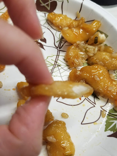 I've been to this Pei Wei a number of times, normally it's decent. However, I just ordered online and picked up my normal order (Pei Wei Spicy Chicken..now called Pei Wei Original) and am VERY disappointed. I did not get ONE solid piece of chicken breast. Almost half of the "chicken" contains no chicken at all , and is just the coating (the top half of the photo. This photo shows every piece of "chicken" included in my meal), and the other half is clearly leftover pieces from the bottom of the barrel. The thickest piece is no more than 1/8 of an inch. I will literally be throwing my meal out :(