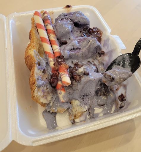 Now with that being said, I was clueless as to what else I should get. I've already tasted, macarons, croffles, Etc. I ended up getting the croissant with chocolate ice cream since I've never seen that combo before. While hesitantly ordering, I was very confused about how to eat it and asked her. I originally asked her to put the ice cream on the side, but she was insistent on putting it on the croissant. She was actually super nice about the whole thing though, and gave an extra scoop since I was sharing it with someone. That was very generous of her! However I did not really enjoy the chocolate croissant only because it was very hard to eat. The croissant was very tough and we couldn't even cut it with a knife.