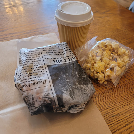 My panini was absolutely delish! The melty mozzarella was such good quality cheese and the pepperoni was a nice thick stack! It was just all ooey gooey yumm! It was wrapped in the coolest paper! I also got a free sample of their kettle corn alonf eith it. My cider was ok. I wish they gave an option for spiced cider :) my husband said the chicken tortilla soup was alright but there was a flavor profile to it that wasn't hitting the spot. I did not try it as he's feeling under the weather.