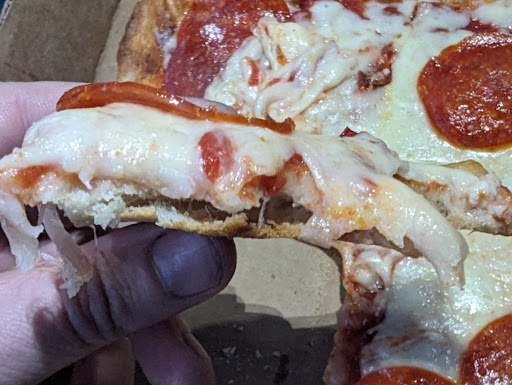 This pizza is the Best, Ohio valley style pizza to date... De Carlos is good. Bruno's is good but as far as texture and consistency this pizza takes the Cake.. what I want to know is why do they all taste the same?? It's like they're using the same supplier. Same cheese source, same sauce, same everything... The only thing that changes is the texture.. would it be too much to ask to add some spices to the sauce or maybe use a aged provolone? Anyhow, this pizza is single-handedly the best pizza in Ohio that I found so far.. and West Virginia.. If you like crispy crunchy crust with the Ohio valley style sauce and cheese. This is the pizza for you.. I have three other pizza places in my local area that taste exactly the same but this one seems to do it correctly.. this is the pizza that I will be buying in the Ohio valley region until I find one that...