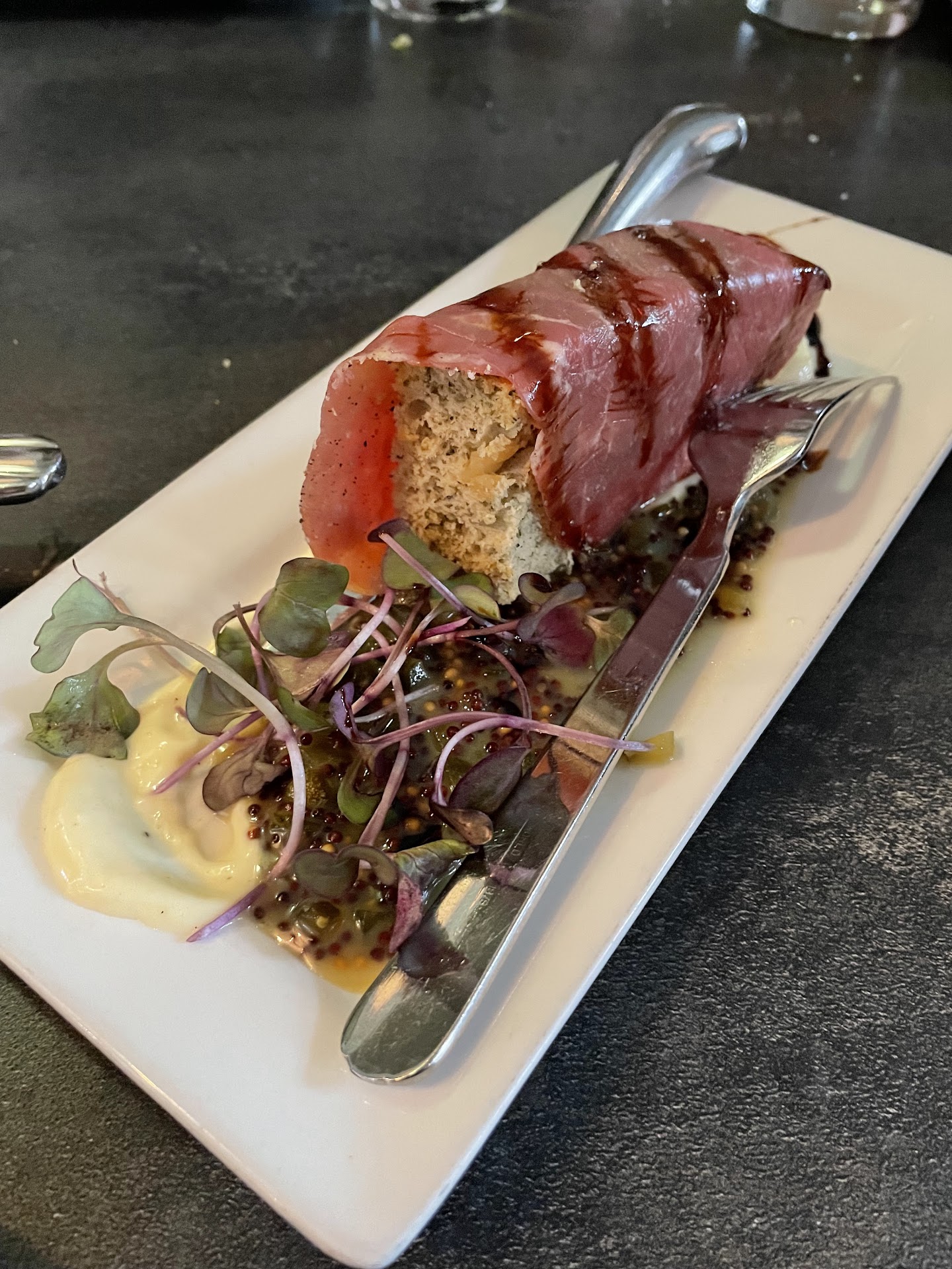 Everything we got was great, though everyone at my table had different favorites. The beef carpaccio was a standout for me, just sublime, good enough that I ordered a second round because tbh had I known it would be that good I wouldn’t have shared the first one with my husband quite so readily. Pork nachos were great (the pork itself was wonderful, smoky and tender), and my SIL would’ve happily had the sweet corn & asparagus risotto to herself. My husband really liked the kielbasa stroganoff and was also happy to have the chance to get a few standalone oysters, as the only seafood eater at the table. (Though this is a good place for it - lots on the menu pretty consistently.) Everyone at my table had different favorites but none of us were disappointed by anything we tried. We also had quite a few different cocktails and they were all great, though the Lemon Pepper Wet was a particular standout.
