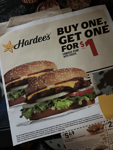 Read moreI came in with two coupons and the ad from the paper that advertised buy one get one for $1. The fine print said it was available for in-restaurant orders. I went through the drive through and there was a young girl working who was super nice, but she had to ask her manager about the deal that didn’t have a direct coupon. The manager came over and took the ad, and her snarky reply was “nobody told me about this, so I’m not doing that,” and then she walked away, leaving the poor employee apologetic and embarrassed. I felt so bad for her… After years in retail management, I’d like to think I have a pretty good grasp of customer service and when to honor or not honor an advertised deal. While I believe it should have been honored, as I had the physical proof in hand, her refusal would have been better received had she shown the slightest amount of human decency. The going out there is rough right now, but don’t take it out on customers. Her demeanor was rude and entirely unprofessional. I haven’t eaten for Hardee’s for years because of their history of sexist advertising, but my partner begged and here we are… The food is fine, so well done to the cashier and food prep staff working under a...