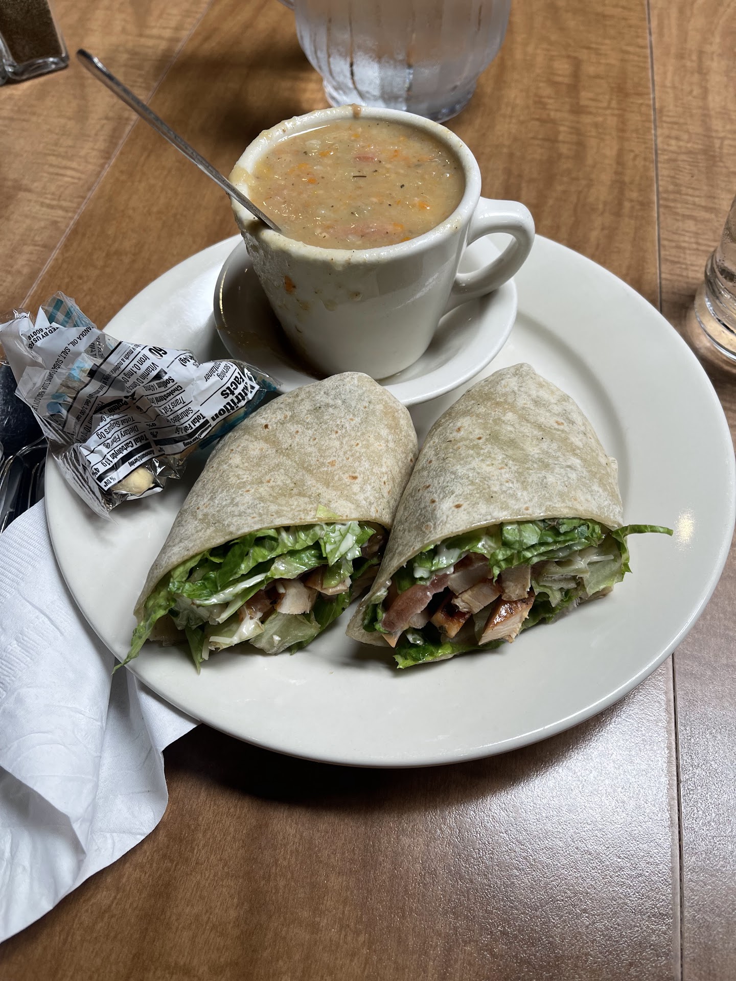 Read morePrices were good for amount of food you get. Food & Coffee were good. Wasnt busy. My husband is very fast eater & I am slow eater, plus I have slight case of bels palsey, which makes bit harder for me to eat, he was already done w/his food, as I was starting my second pancake & our server comes out & asks me as I'm going to take a bite of my food if I wanted a box. What? I tried explaining I'm a slow eater & she interrupts me saying she wasn't trying to rush us out & she's leaving our bill, well that's exactly what it felt like to both my husband & I. I know she picked on fact she had ticked me off. When I finally finished my food, it was challenging to get to register, there were 2 tables in front of it w/5-8 people @ each table, forcing me to climb behind the people & table that was partially in front of register & bakery case, so it'd be nice if those tables could be moved slightly to allow better access...