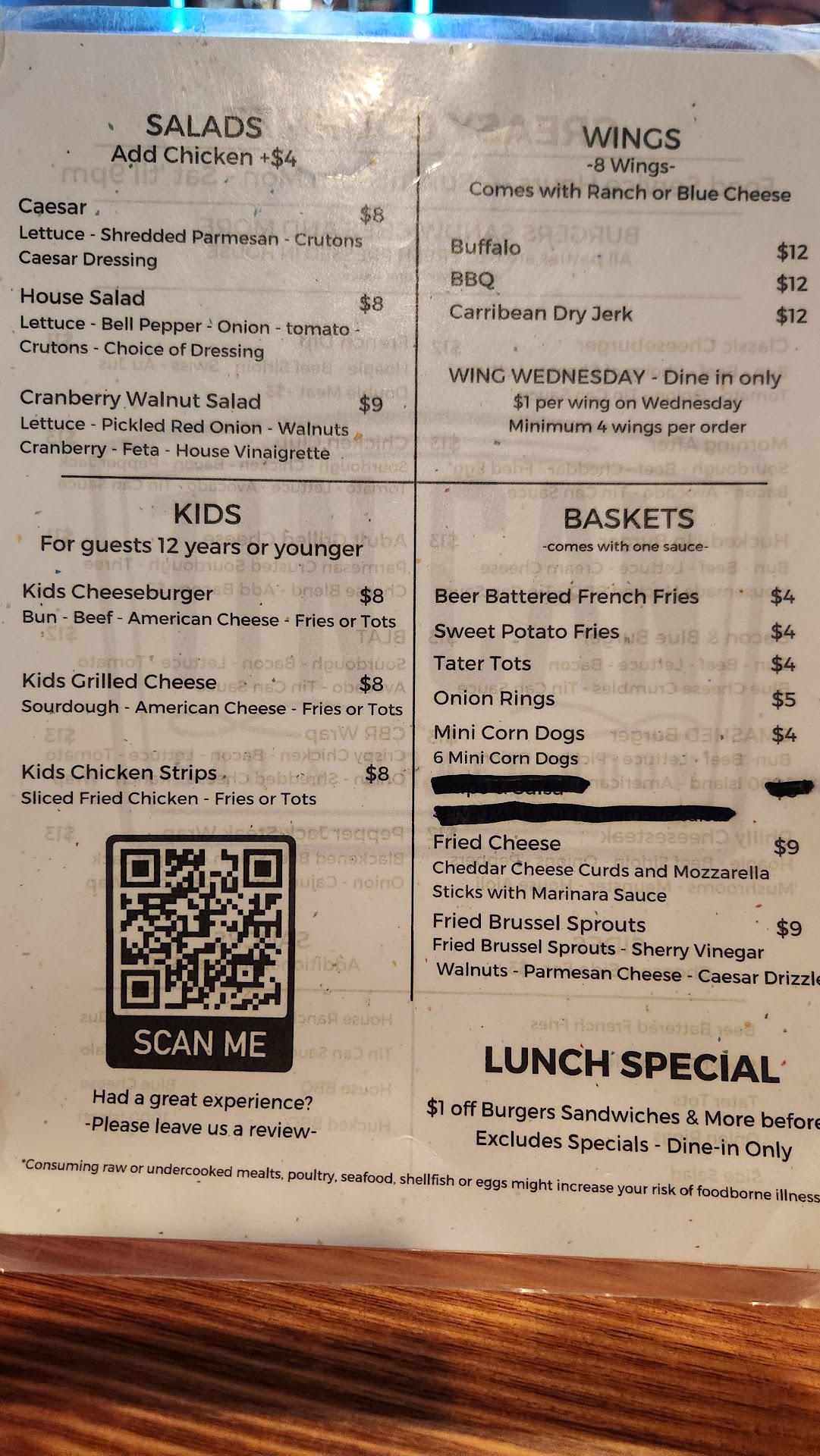 Read moreMy friend Dezi said I should try the burgers here. For some reason I just never got over here back then, but now that I did today, I will make a bee line to this place again and again! My Grilled Chicken Club was delish! Seriously I haven't had one better taste wise in a long while. The flavors and sauce were perfect. The tater tots were almost a cross between chips and fries-crunchy and soft inside with a hint of herbs. Soooo good. The sweet potato fries and beer battered fries were also very tasty. I tasted the Huckburger and the smash burger. 🍔 Both of those were good as well. Portions were great. The place was clean. Our waitress was quick and efficient but not really around to have friendly exchanges or refills on water. The guys thought she was cute though. LoL Anyhoo I give it a solid 4 I may update it to a 5 later, because I will go back, but it is always the workers and waiters that push the last start for me. Oh on a super hot day like today don't let the open picture/table window scare you off, because it was nice and cool...