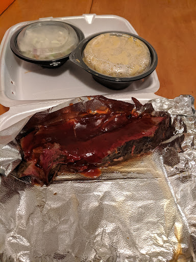 Service was cheerful and reasonably-prompt. Ordered a full rack of baby back ribs with sides of mac-n-cheese and baked beans. The mac may not have been the most flavorful, but I give them kudos for not overcooking the pasta- no "bowl of mush" here. The beans were flavorful, if a little too sweet (this is strictly based on personal preference), but had some pork mixed in with them. Side portions were right for the price.