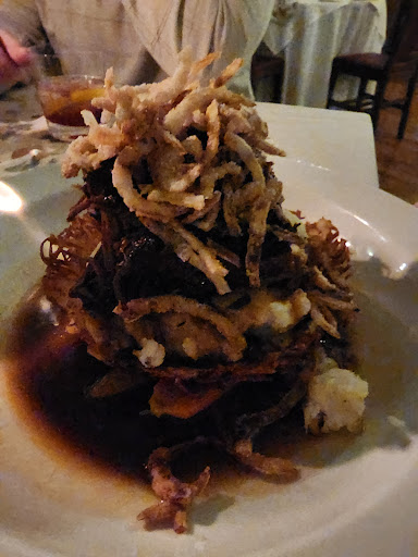 This past weekend, Saturday night, was another meal to remember. We started off with a Peach Aperol Paloma and La Beaume cocktails expertly prepared. For starters we ordered the ‘Burrata and Grilled Peaches’ (Over arugula with sliced almonds, prosciutto, and honey garlic vinaigrette) and the Fried Calamari (I do not have the full description - but soft & tender!). Two glasses of well priced and delicious wine; and for our entrees: ‘Black Peppercorn Crusted Elk Tenderloin’ (Foie gras truffle whipped potato, snap peas, topped with fried onions, whole grain mustard cream), ‘Pan Roasted Herb Crusted Berkshire Pork Chop’ (Over roasted potatoes, zucchini, and squash, topped with apricot chutney and pickled red onion) and ‘Seared Scallops’ (Fingerling potato crab hash, asparagus, lemon beurre blanc and pomegranate glaze). For dessert we had an espresso martini, chocolate martini and a cup of coffee.