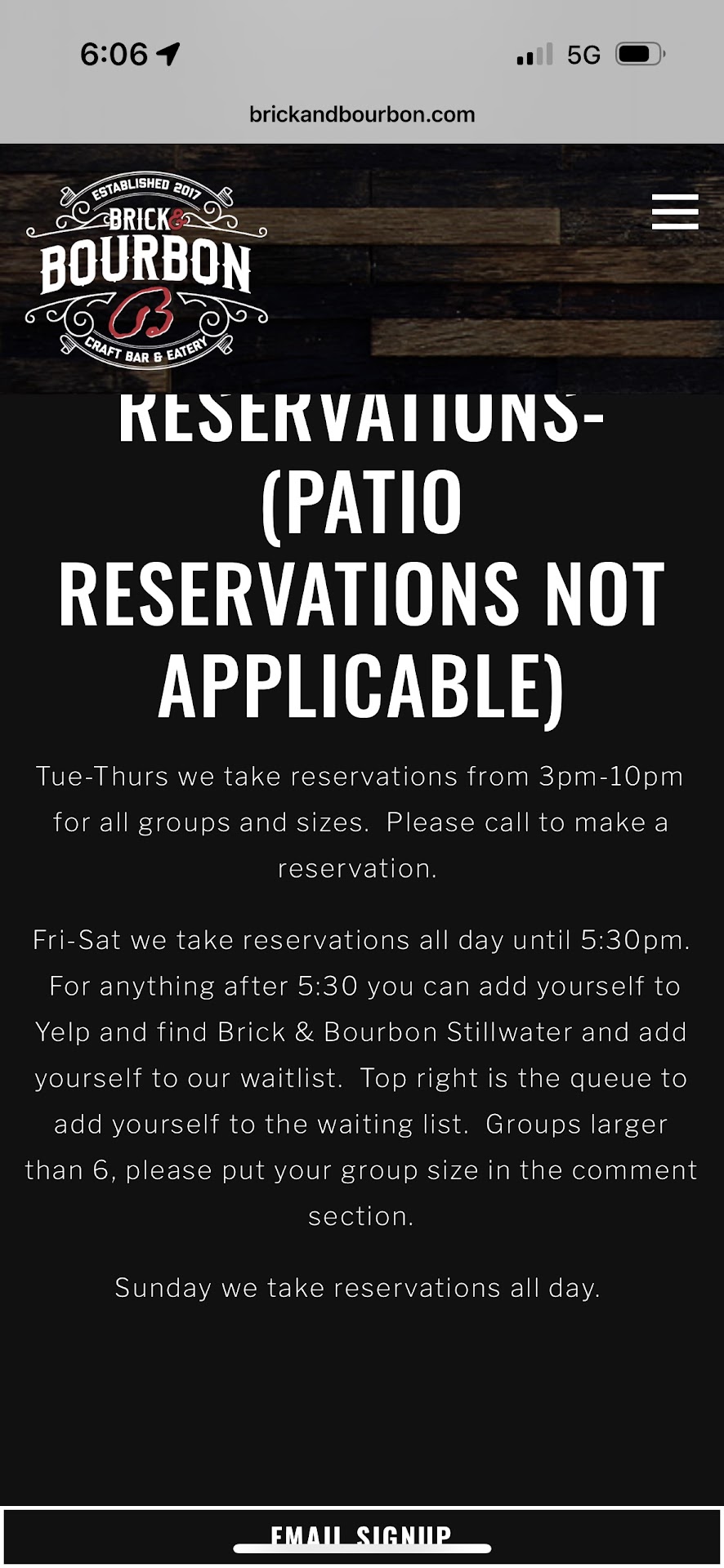 Brick and Bourbon apparently does not want customers and actively encourages you to go elsewhere through their actions. I wish I had read the one star reviews before choosing this restaurant, as the exact same issues happened to us. Apparently this is a consistent problem that Brick and Bourbon chooses not to correct.