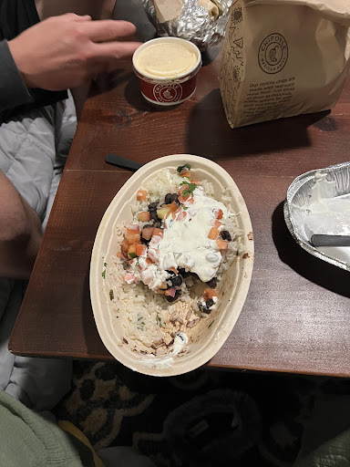 Store had a line, but nothing put of the normal. Staff worked like a machine with little to no conversation/ acknowledgement of the people they are helping. The store was messy. Even the counter by the cash register. Im not sure how someone spills their burrito topping there and the staff doesn't immediately clean it up. The portions were smaller than normal unless this is a new thing. Had to ask repeatedly for more rice, more beans, more salsa. If not my bowl to go would have been half of the container they put it in. It seems like they are always out of guacamole. You'd think that would be something they would keep in stock since it is a money maker everytime it's ordered. As dirty as the store was it must not have started out with guacamole because the bin it's been in before was maybe the cleanest thing on the prep line. 1 burrito bowl cost me $22 and I didnt even get offered a receipt. Which i asked for...the food is tasty so I can't say I'll never go back. (because let's face it i...